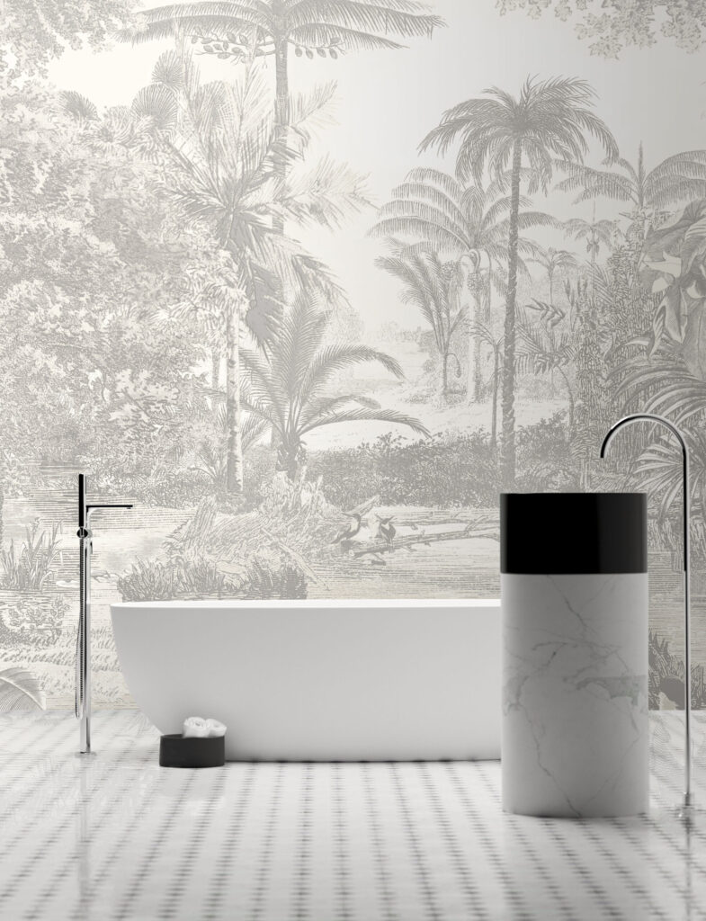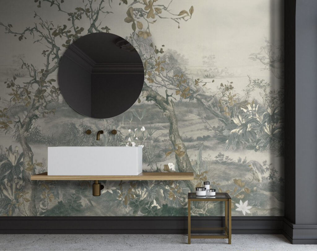 A bathroom is more than just a practical space it is a place to unwind and surround yourself with style. Even an older bathroom with a vintage washstand can be completely transformed. With bathroom wallcoverings by daisy james, the room immediately gains a new dimension: nostalgic details are turned into timeless statements. Our collections offer endless possibilities for an inspiring bathroom. One design takes you into a calming forest, another into a serene oasis or an artistic world full of imagination. Thanks to seamless designs and refined details, even the simplest or most dated bathroom can achieve the look of a stylish bathroom that truly stands out. Whether you choose something subtle or bold, with the timeless design of daisy james you create a bathroom that radiates harmony, elegance and inspiration always perfectly suited to your personal style.