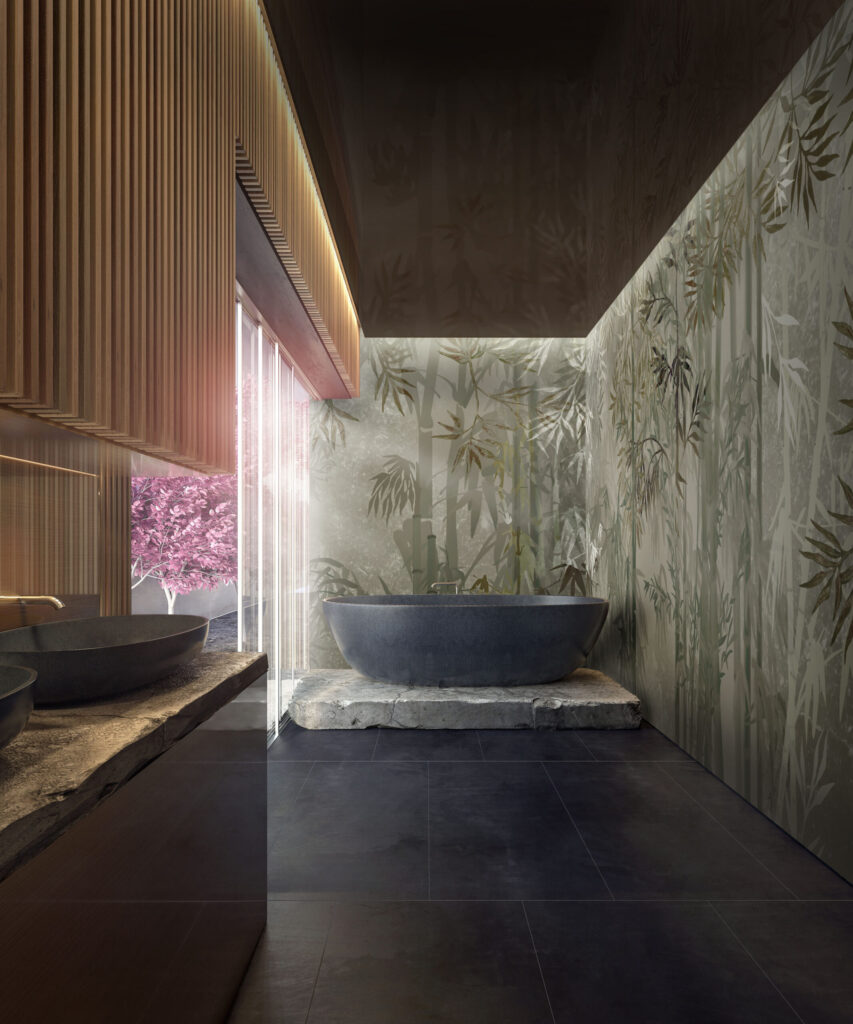 Whether you dream of a serene spa-like retreat, a bold artistic statement or a sleek modern design, our seamless wallcoverings and acoustic solutions make it possible. Each style is created to inspire and to reflect who you are turning an ordinary bathroom into your personal oasis.