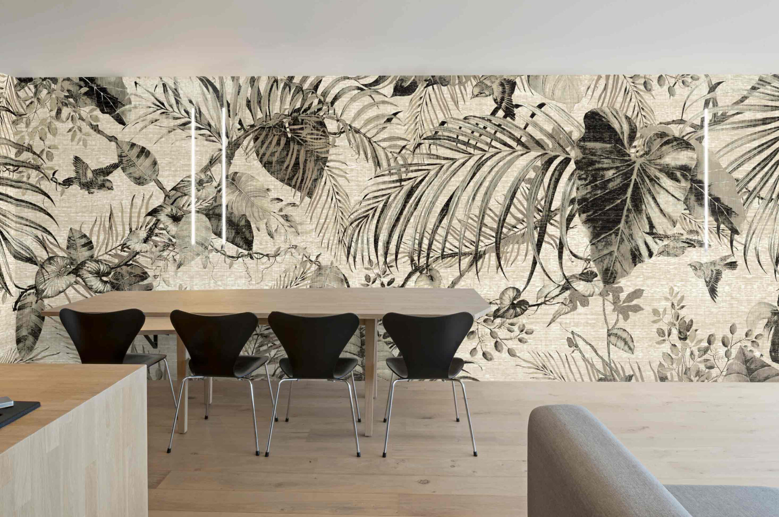 Have you ever realized how many varieties of green nature offers us? And did you even take a better look at all the shapes of leaves? We have. And we are happy to show you in this design. This vibrant wallpaper with tropical plants adds a tropical touch to your room.—————————————————————————————————————————————————————————————————————————————————————————————————————————————————————————————————————— “Discover how “The Rush No.1” was used in one of our interior projects. See the result here.”