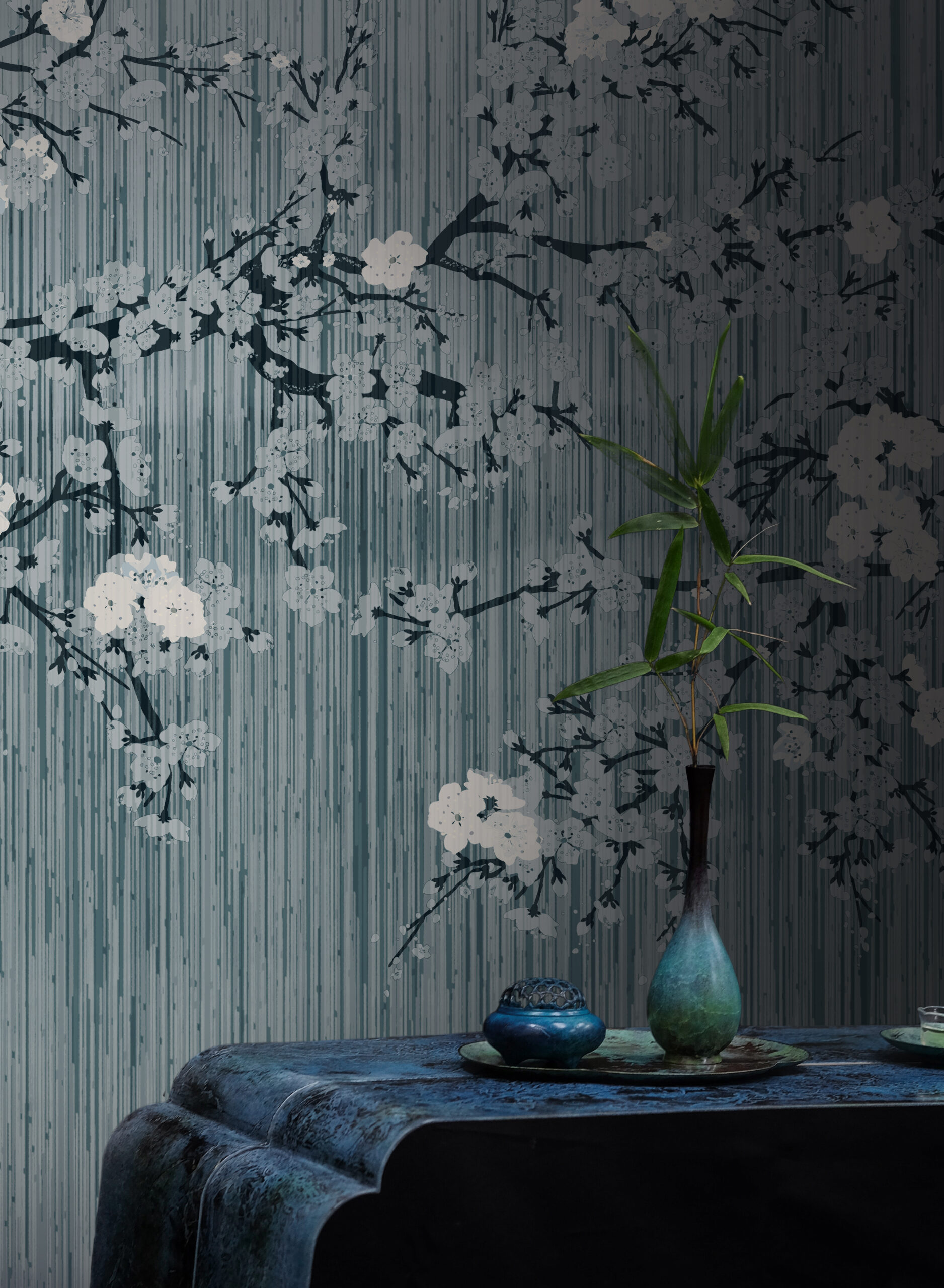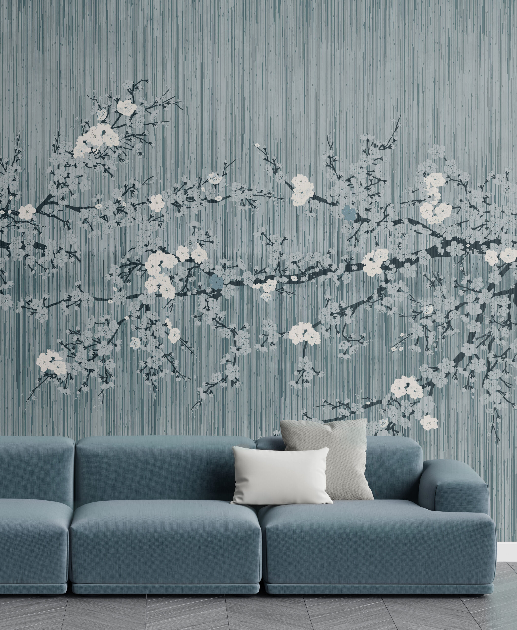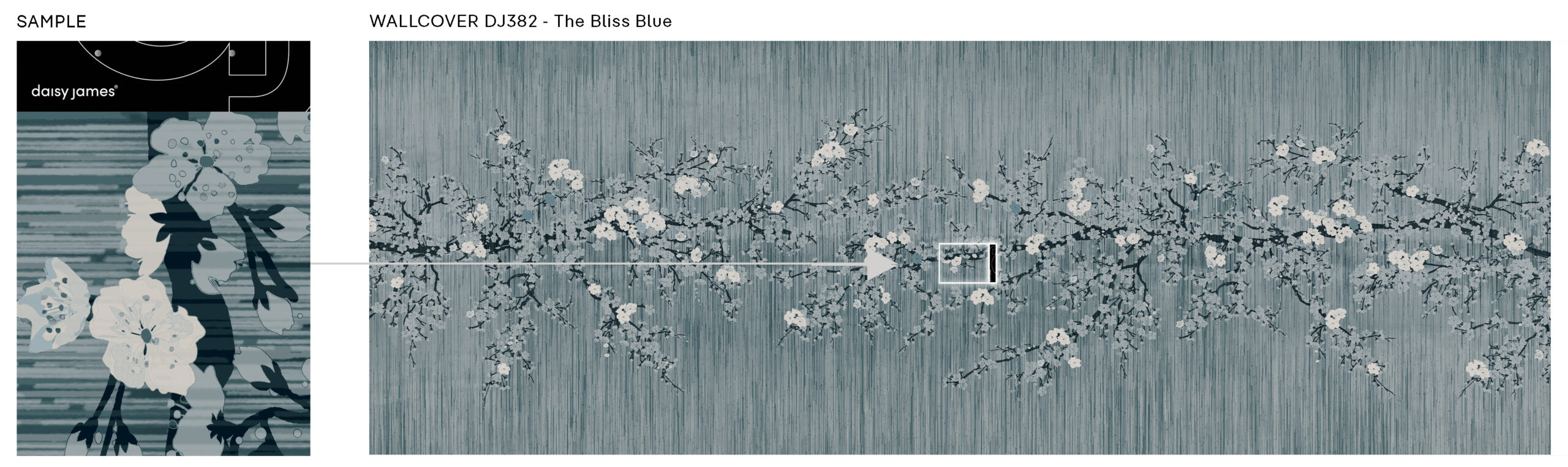 “The Bliss” is a daisy james wallcovering that reflects serenity and refined simplicity. Inspired by nature’s gentle rhythms, it features a soft linen texture in six muted pastel tones, overlaid with by a pair of floral branches. A distant horizon adds quiet depth, bringing calm and light to any interior. Crafted for those who notice the details, “The Bliss” transforms a wall into a moment of stillness — seamless, elegant, and unmistakably serene. A soft, misted blue that echoes early morning skies. Calm and understated, it lends a quiet coolness to any space, with just a hint of serenity.