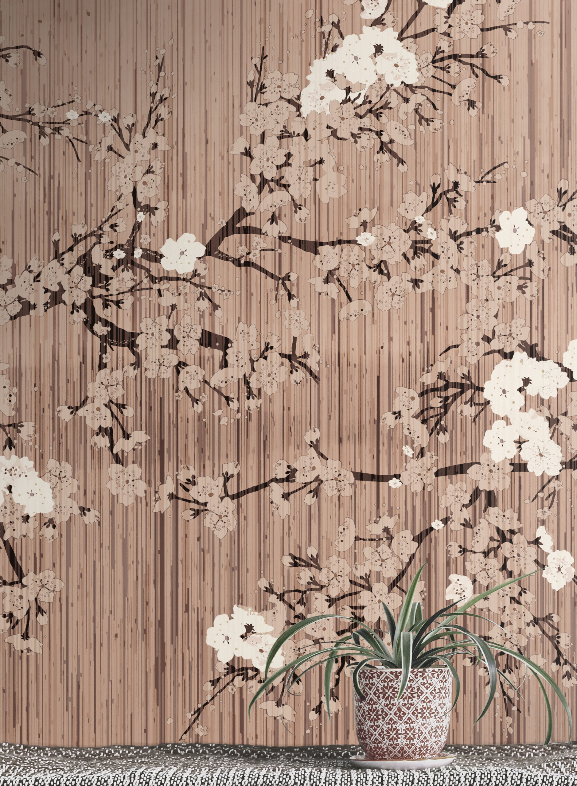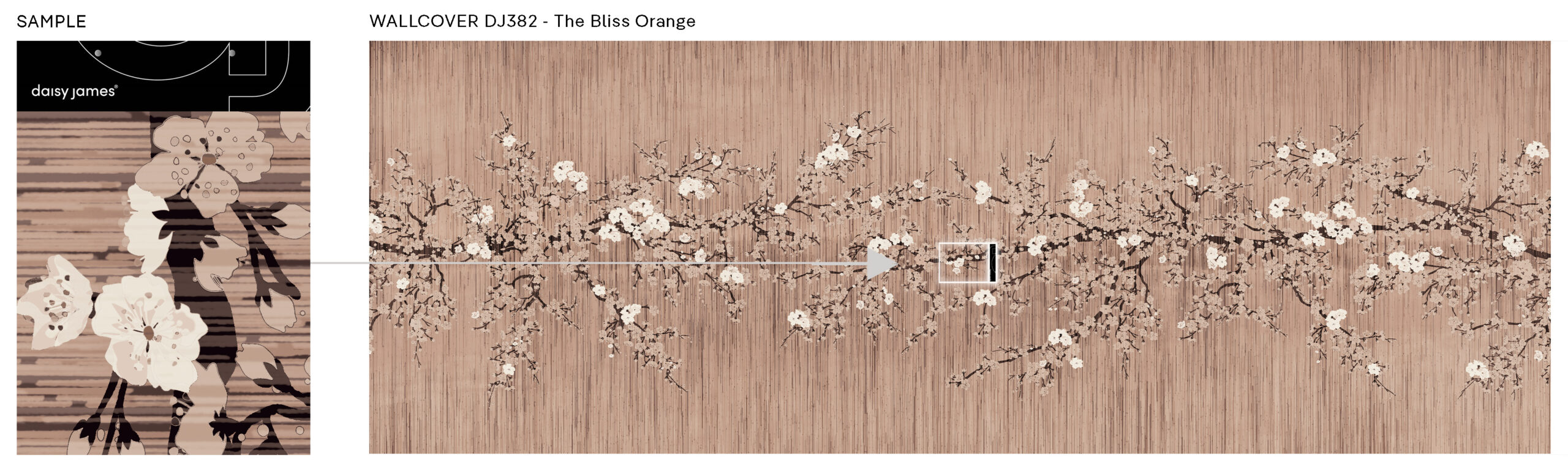 “The Bliss” is a daisy james wallcovering that reflects serenity and refined simplicity. Inspired by nature’s gentle rhythms, it features a soft linen texture in six muted pastel tones, overlaid with by a pair of floral branches. A distant horizon adds quiet depth, bringing calm and light to any interior. Crafted for those who notice the details, “The Bliss” transforms a wall into a moment of stillness — seamless, elegant, and unmistakably serene. A mellow apricot tone — soft, sun-faded and sophisticated. Radiates quiet comfort and a subtle, welcoming warmth.
