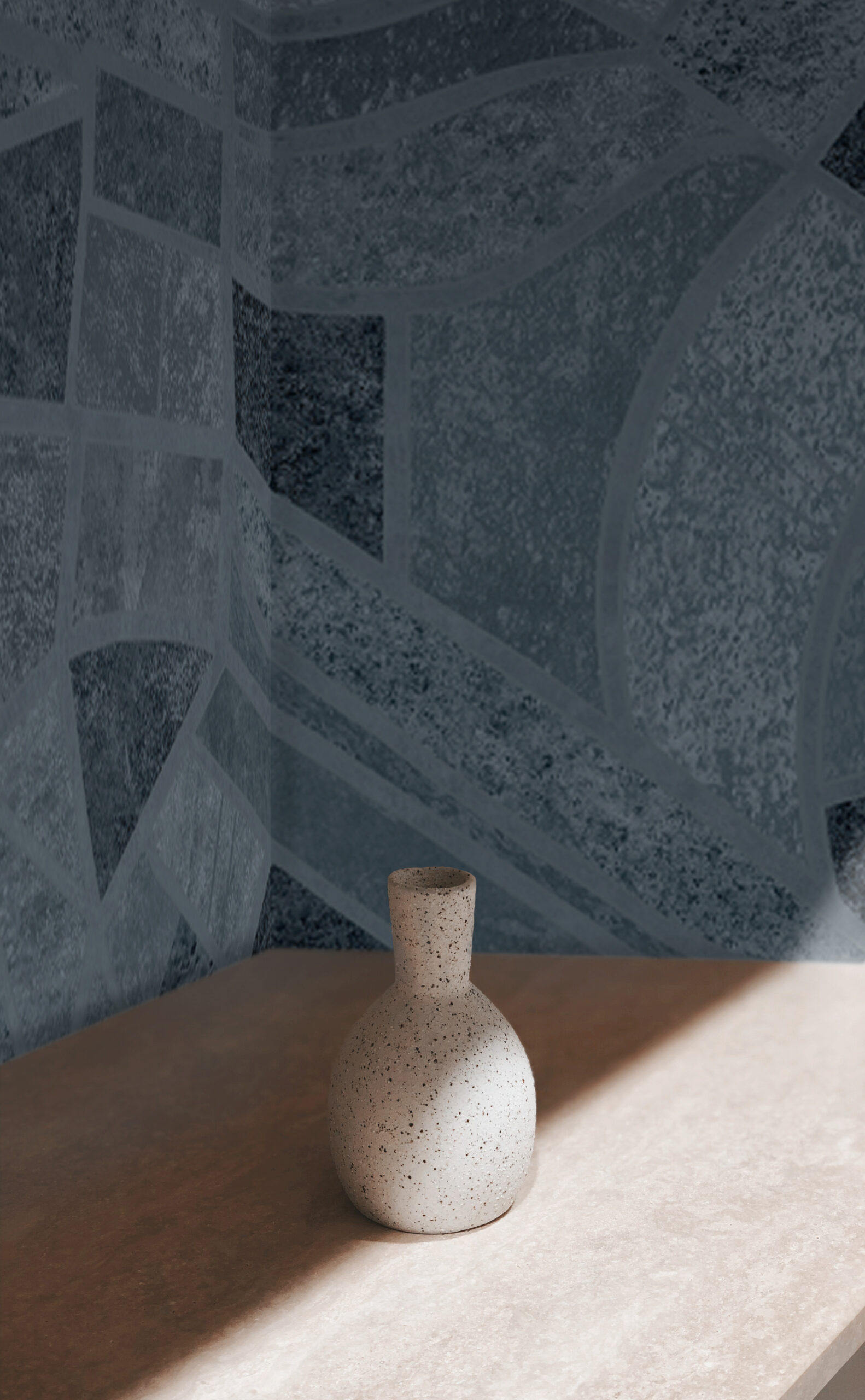 “The Blues” by daisy james is a contemporary wallcover featuring an abstract surface composition in multiple shades of blue. The design runs continuously over 8 meters with no repeat, creating a single, uninterrupted visual field. Variations from deep blue to denim-like tones produce a controlled tone-on-tone effect. The layered colour application creates the appearance of multiple textures. Combined with the linen-like structure of the material, the result is a refined surface with visual depth and a calm overall presence.