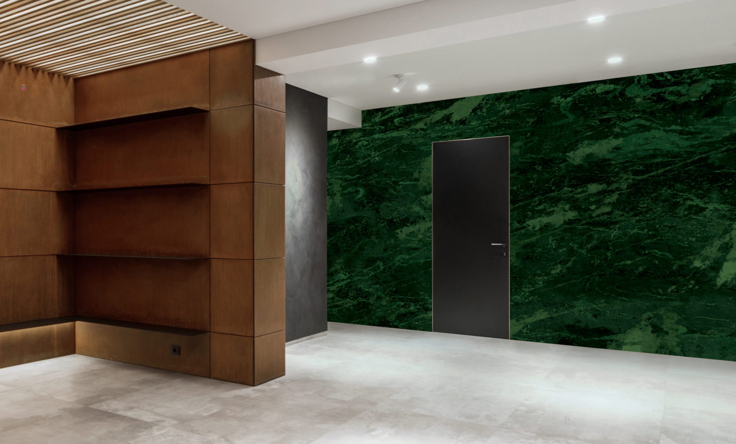 “The Dark Greenstone” unveils an exquisite wallpaper that embodies the timeless allure of dark green marble. Elevate your space with its captivating motif and craft a remarkable ambiance reminiscent of forgotten empires and hidden treasures.