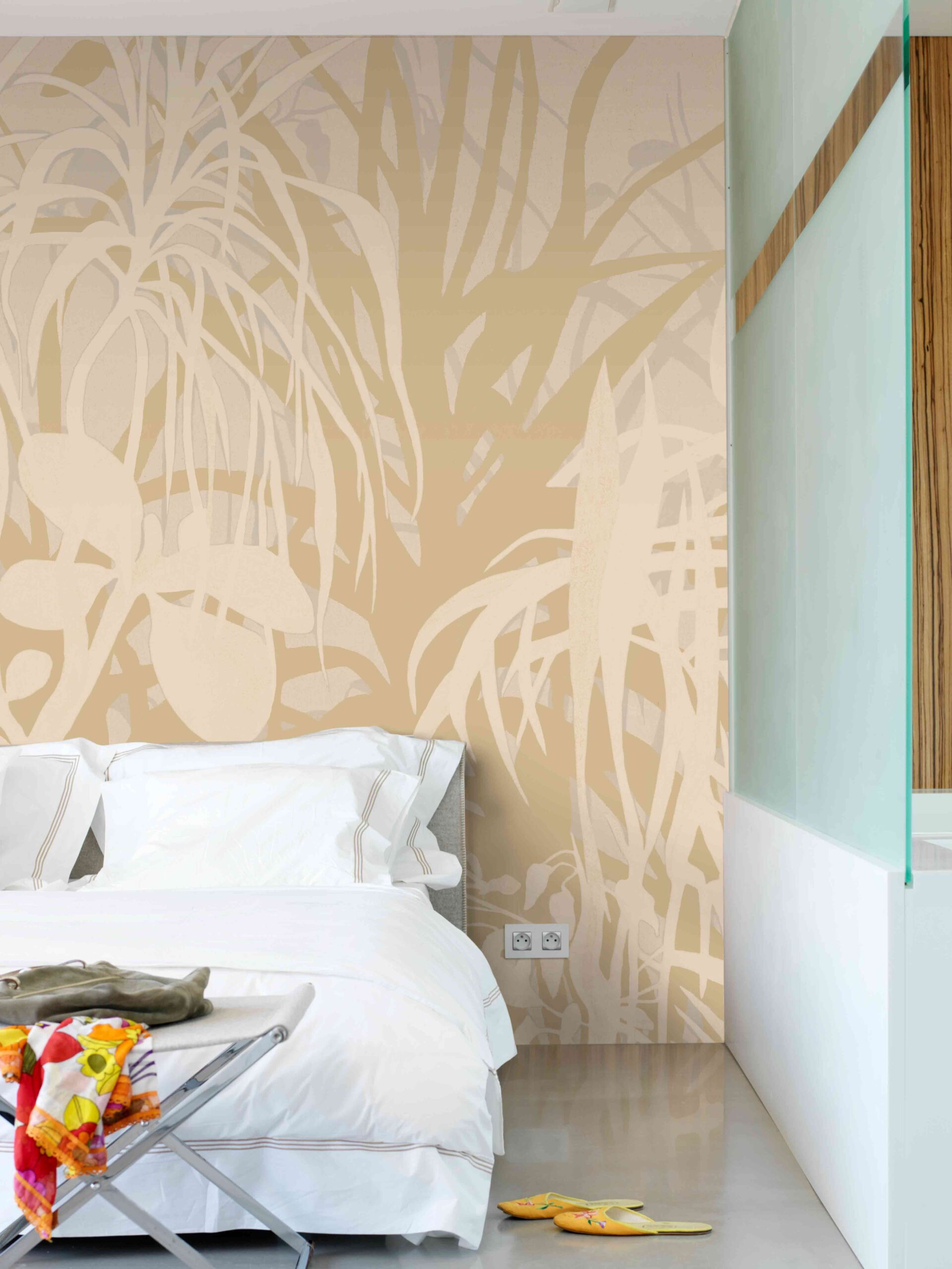 Subtle and refined: ton-sur-ton leaves in warm ochre tones bring calm and elegance to any interior.