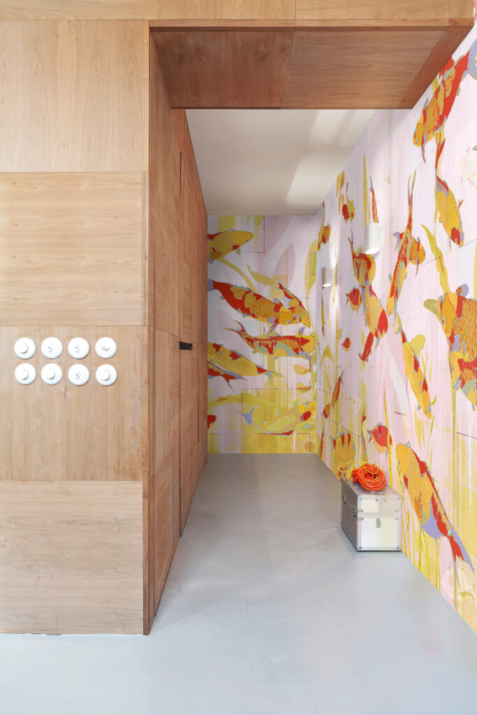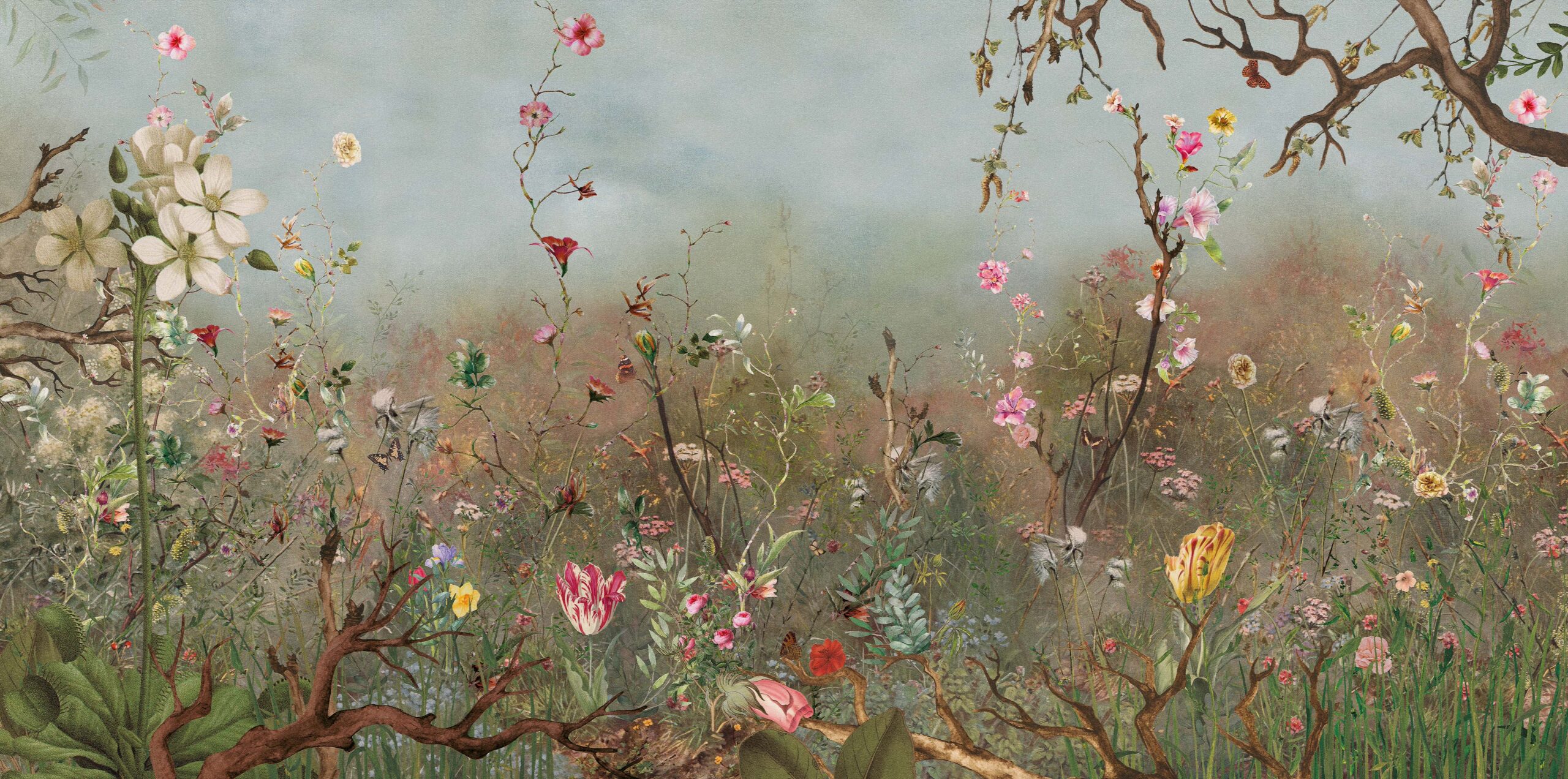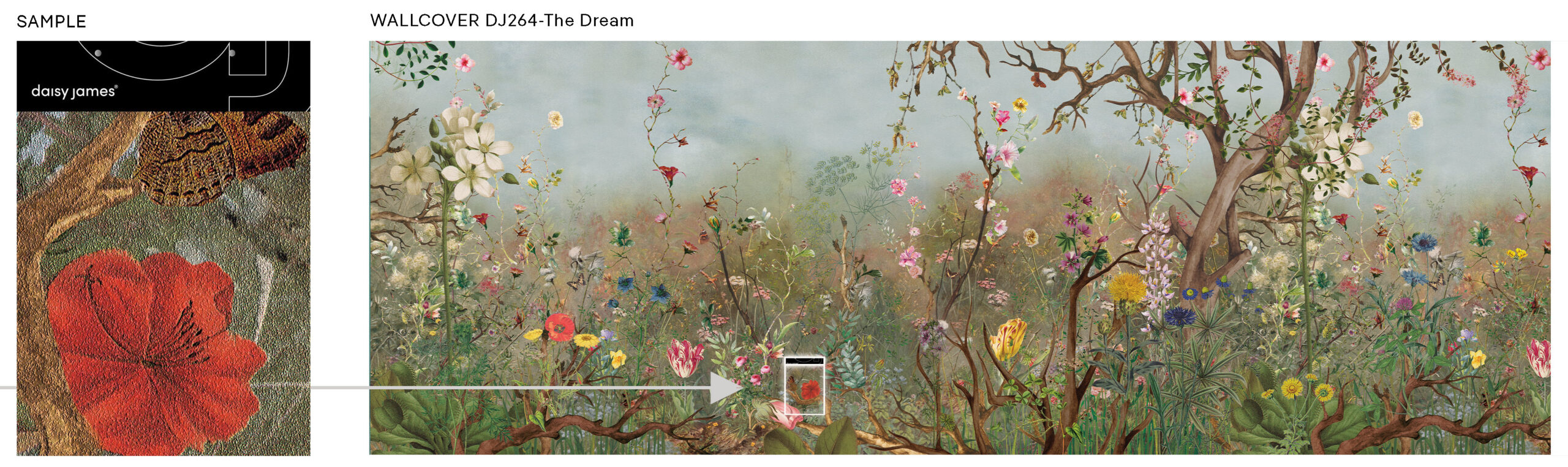 daisy james takes us into the mystical realm with “The Dream” wallpaper. This captivating design features hazy plants and flowers reaching skyward in surreal fashion. While the flowers are stunning, there is an underlying uneasiness as they face the encroaching haze and dust. This thought-provoking wallpaper creates a captivating and intriguing atmosphere in any space.—————————————————————————————————————————————————————————————————————————————————————————————————————————————————————————————————————————————————————- “Discover how “The Dream” was used in one of our interior projects. See the result here.”