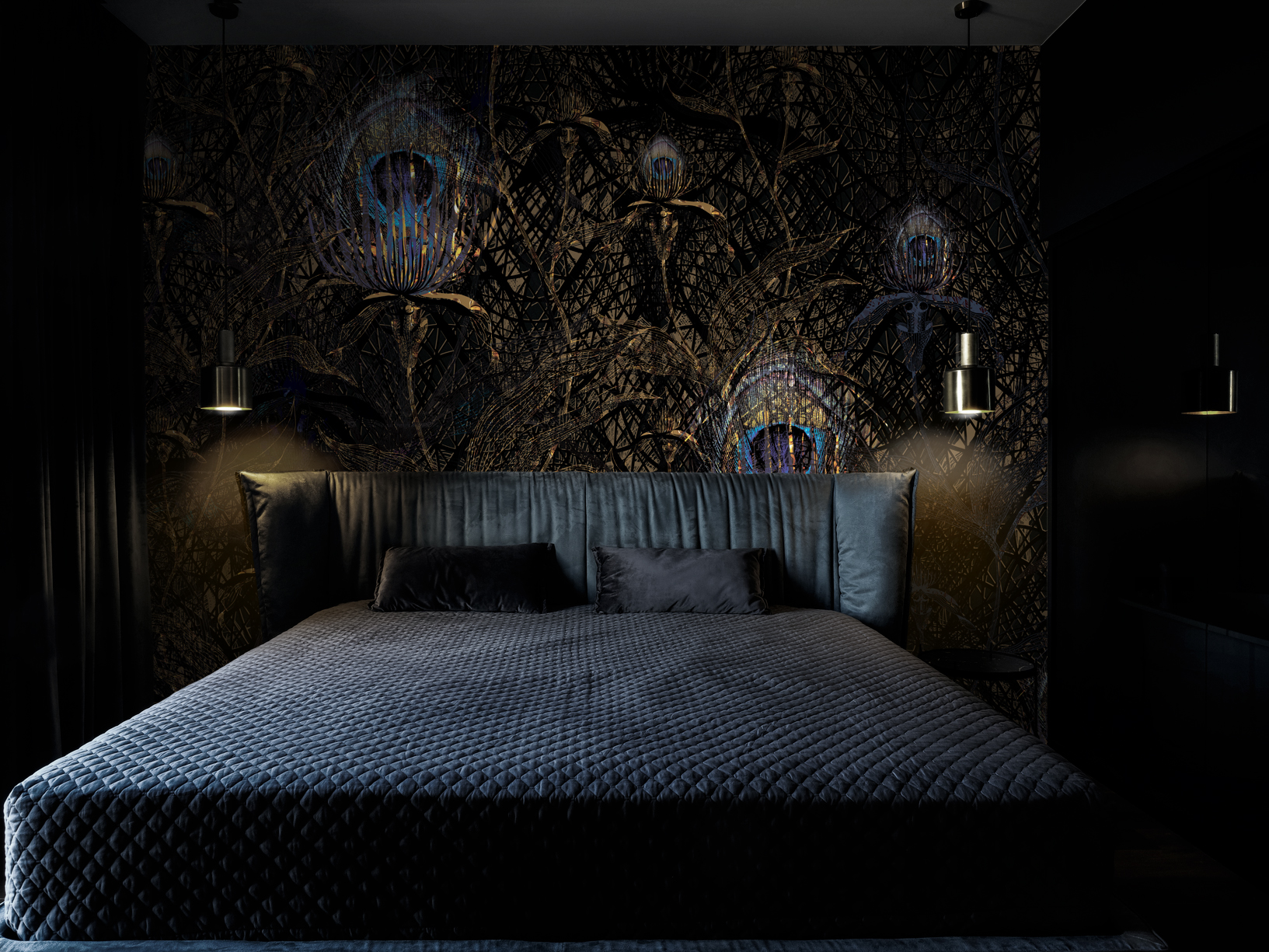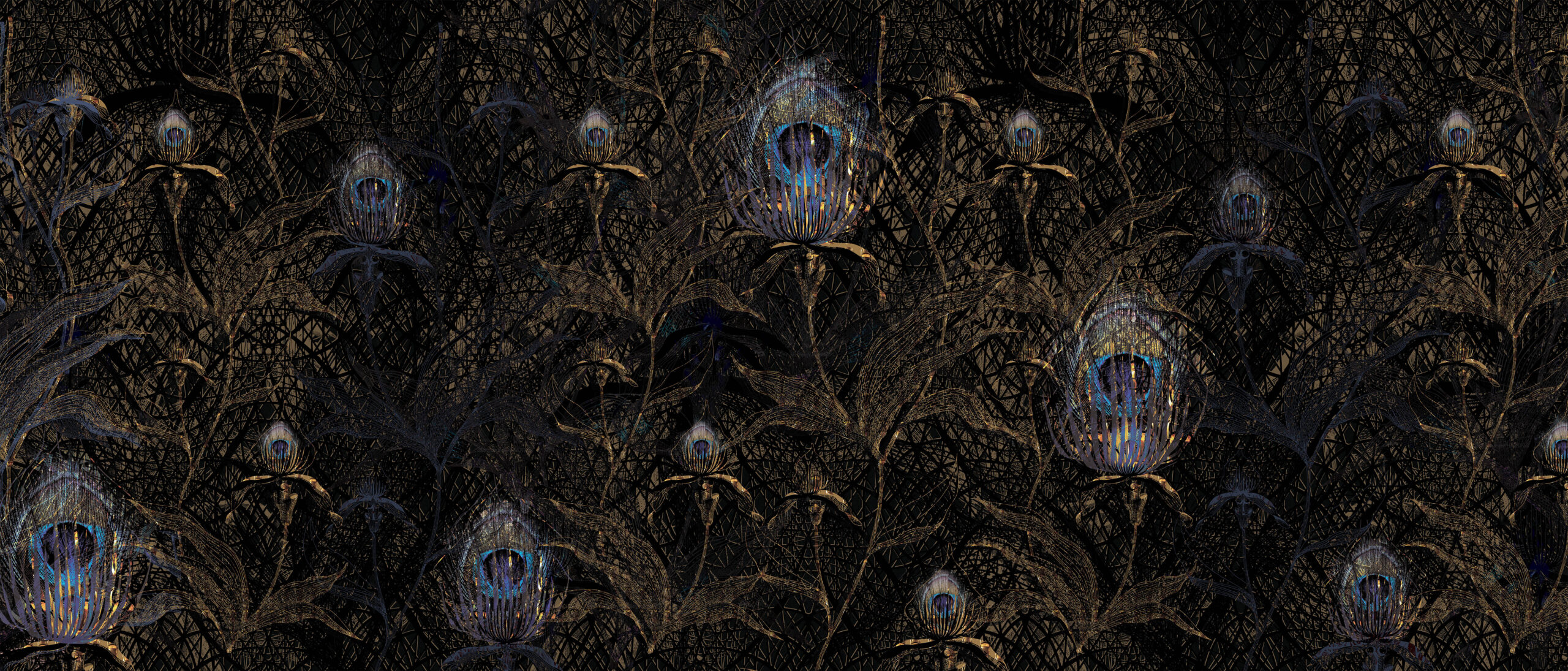 Inspired by the enchanting allure of a dense forest, daisy james has created a wallcover adorned with fine leaves and feathers. This design exudes a sense of mystery and sophistication, adding a stylish touch to any room. Amidst its captivating appeal, there are numerous hidden details and elements to discover, making it an engaging and intriguing addition to your space.