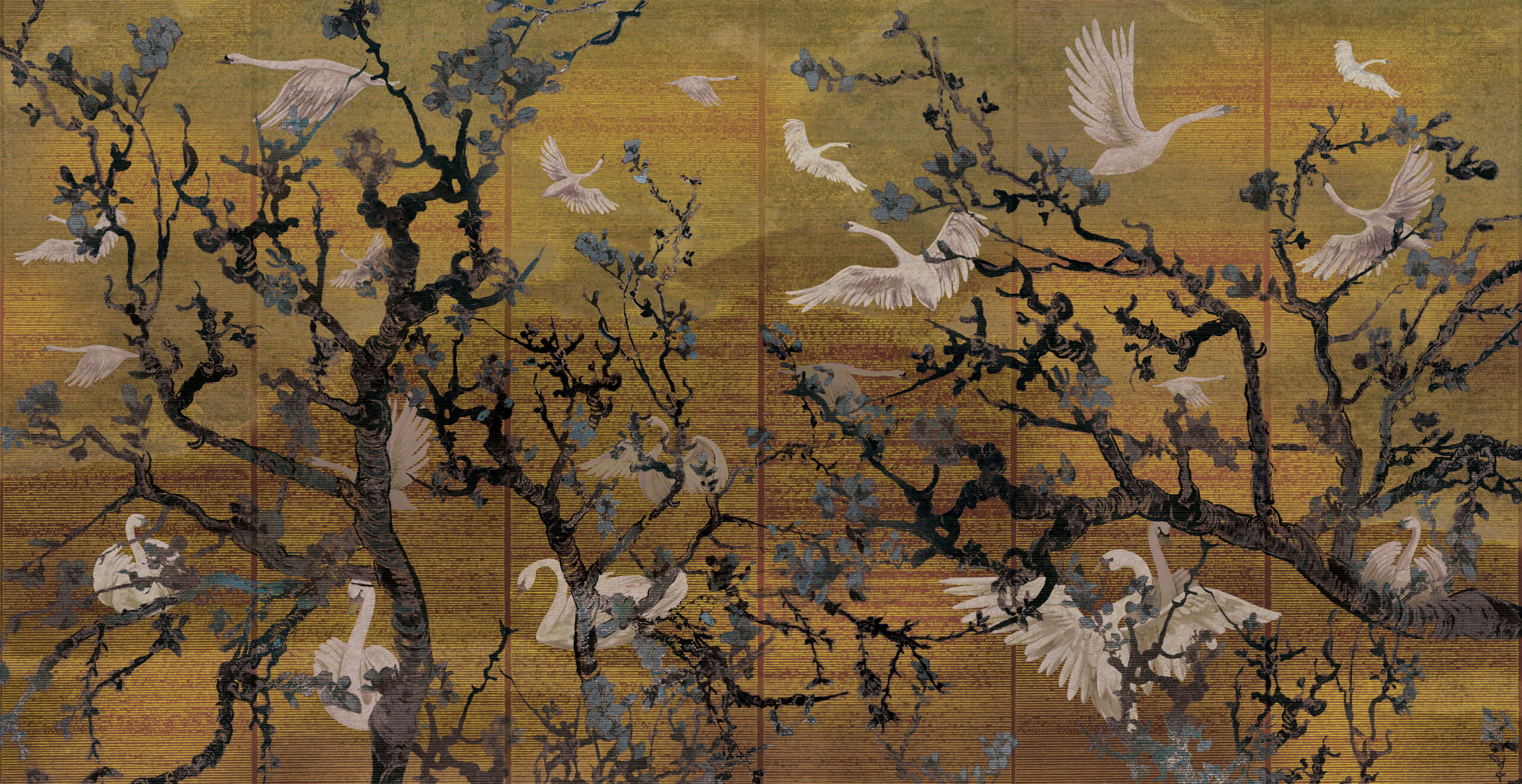 Experience the allure of this vibrant, stylish, and classical wallpaper by daisy james. It transports you to memories of endless lazy, relaxed summer afternoons. Crafted to last for years, it transforms your room into a paradise of beauty and tranquillity with branches, leaves, and swans. Embrace the enchantment of this timeless masterpiece and bask in…