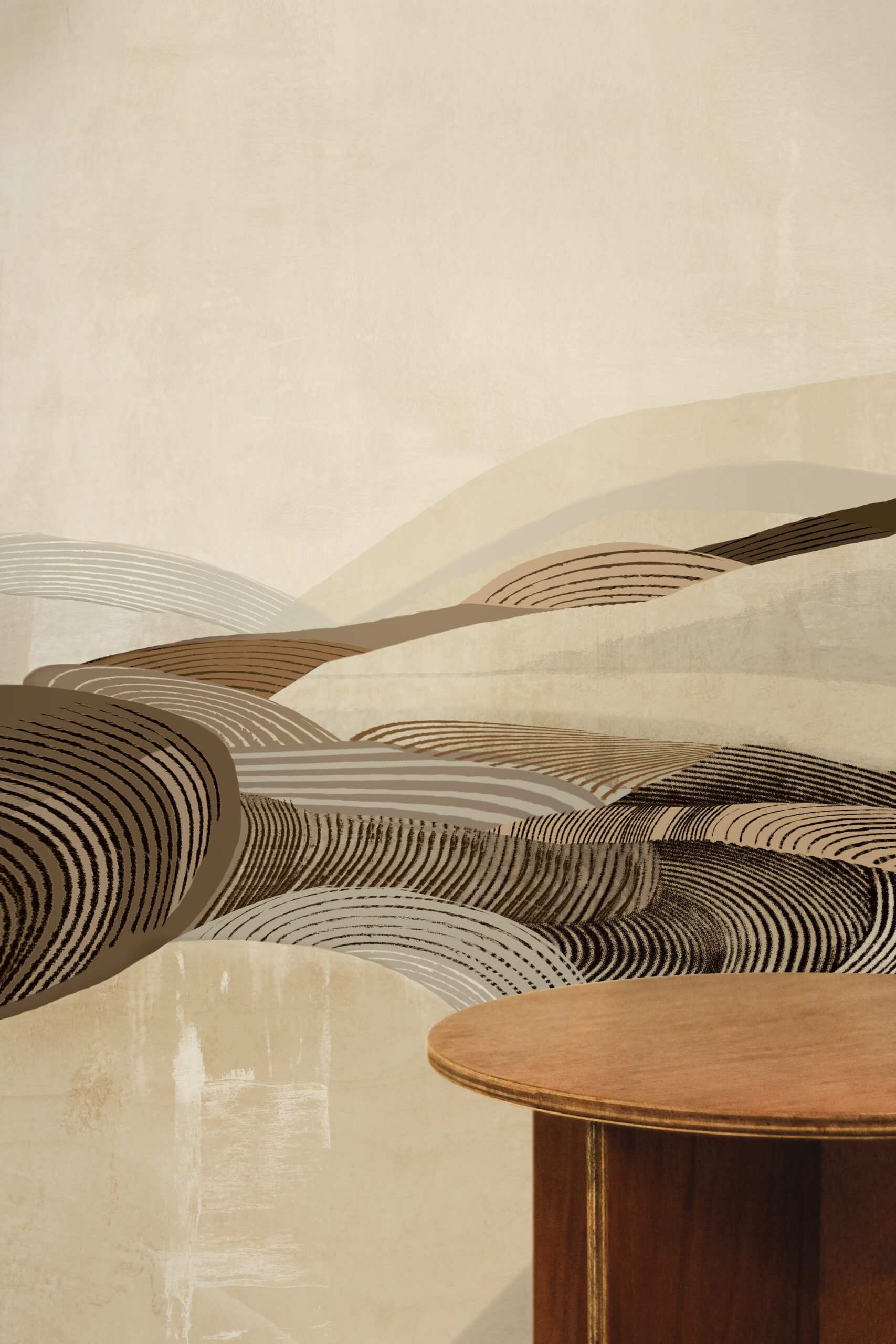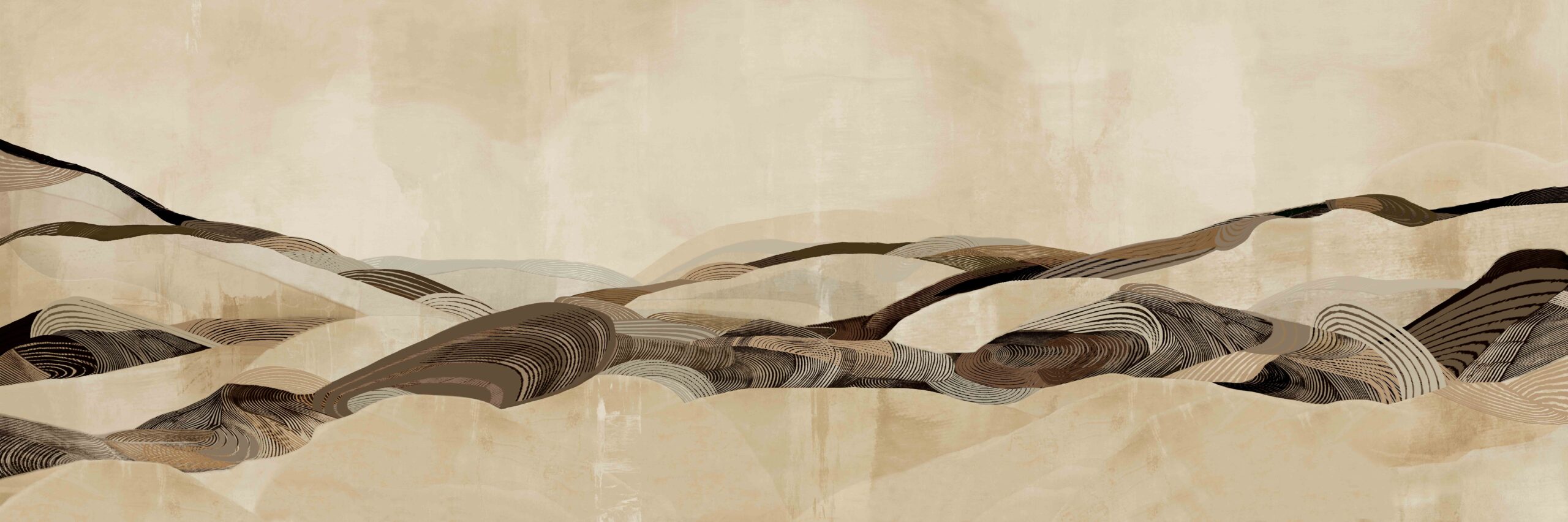 "The Luma" by daisy james is a wallcover that translates the essence of a desert landscape into a modern, abstract composition. Shades of sand, beige, and brown flow seamlessly together, creating a natural rhythm of horizontal fields and subtle brushstrokes. The result is an organic wallcovering that adds depth and character to any space. The delicate transitions between these natural hues give "The Luma" a timeless and serene appearance perfect for interiors seeking balance between natural warmth and contemporary sophistication.