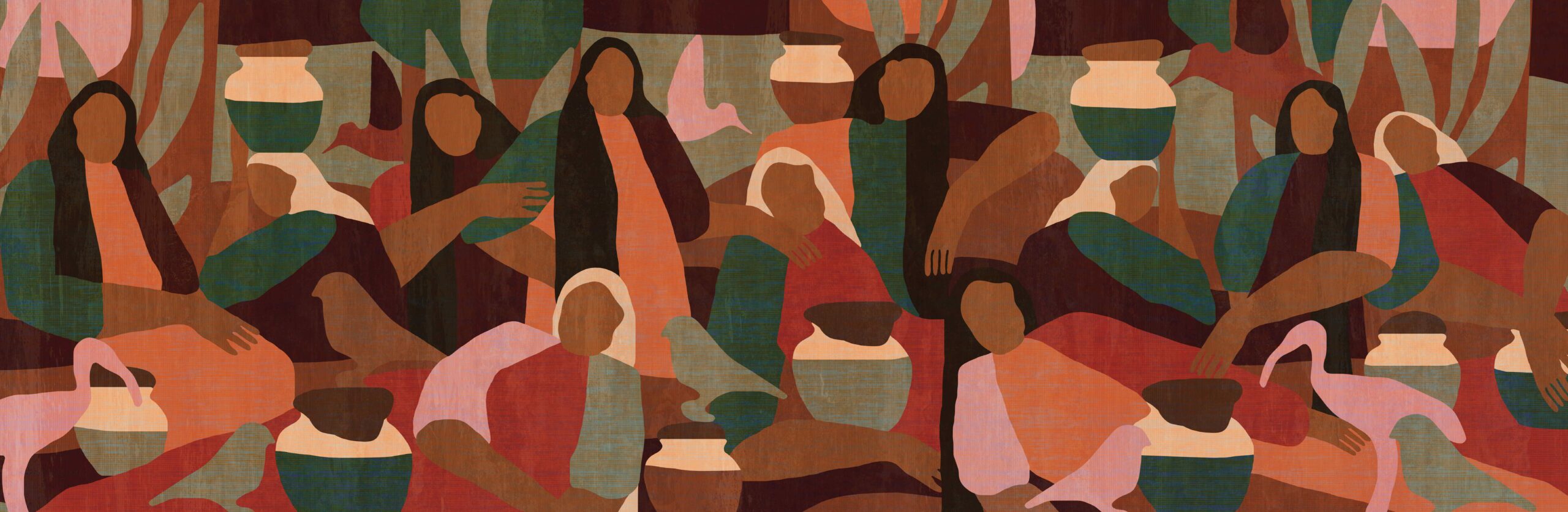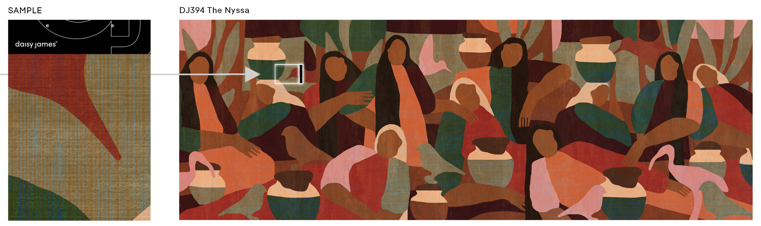 “The Nyssa” by daisy james is a stylish design wallcover that adds warmth and character to any interior. The abstract female figures are clearly visible and, combined with the rich, textile-inspired texture, create a bold and decorative composition that immediately draws attention.