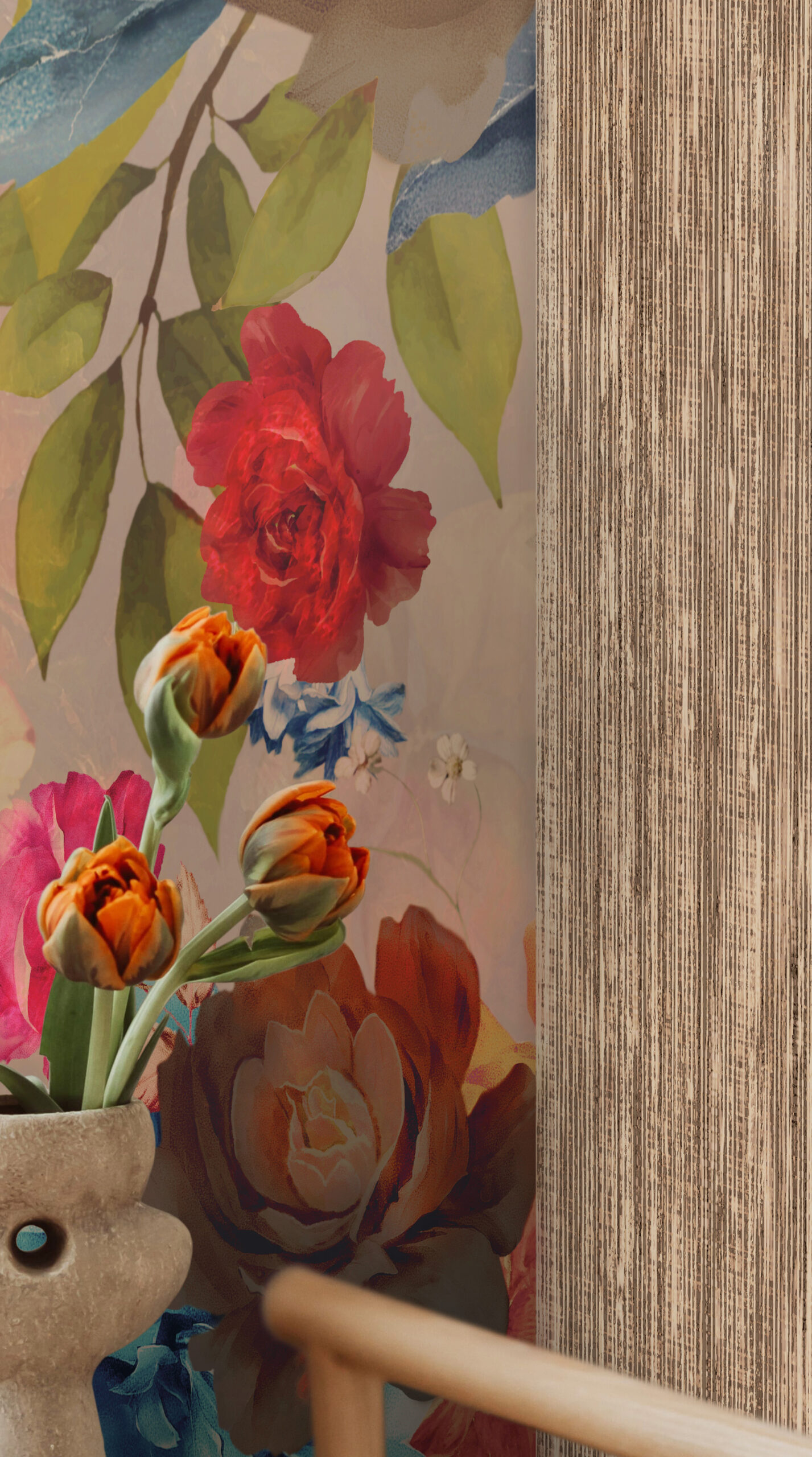 “The Ply Beige” wallpaper design, a versatile and elegant choice from our daisy james collection. With subtle vertical stripes in varying shades, “The Ply Beige” brings a refined yet understated ambiance to any room. “The Ply Beige” effortlessly complements other designs, creating a harmonious blend of patterns and textures. Available in multiple colours, “The Ply Beige” offers endless possibilities for interior design. The beige variant pairs particularly well with “The Floret” wallcover, known for its vibrant floral patterns. Together, they create a stunning visual effect that combines tranquillity with a bold statement.