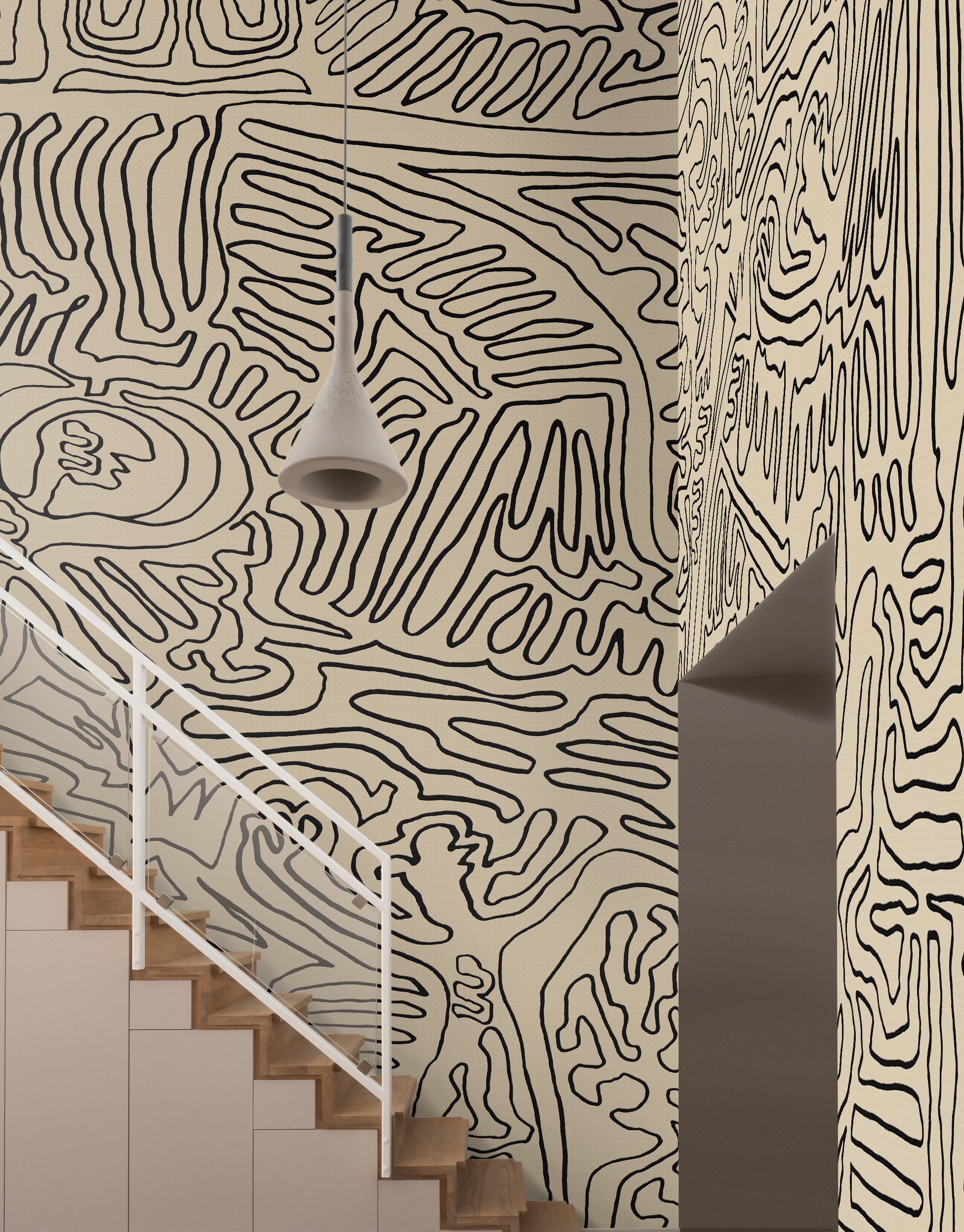 Embrace the tribal vibe with daisy james “The Roam Beige”. Minimalistic yet intriguing, its captivating line art adds a touch of mystery. The high contrast black and beige variant packs quite a punch, making your room an alluring haven of style.—————————————————————————————————————————————————————————————————————————————————————————————————————————————————– “Discover how “The Roam Beige” was used in one of our interior projects. See the result here.”
