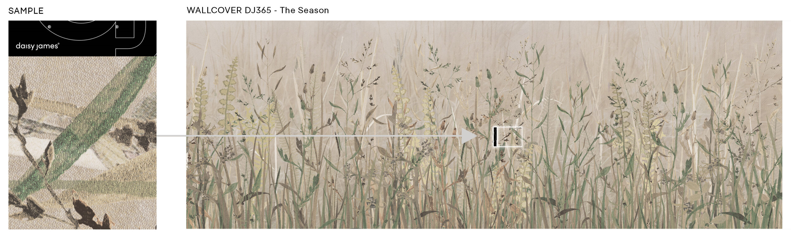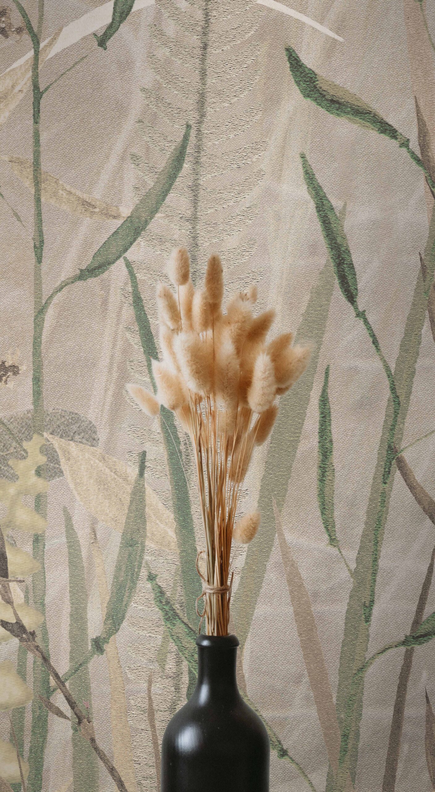 daisy james wallpaper “The Season”, in warm sand tones with a subtle reed design, flows seamlessly from the floor to the walls. The neutral, timeless colours make it the ideal choice for a refined and subtle backdrop that perfectly complements any interior. This wallpaper creates a harmonious, natural look in your home and adds a serene, understated atmosphere to any space.