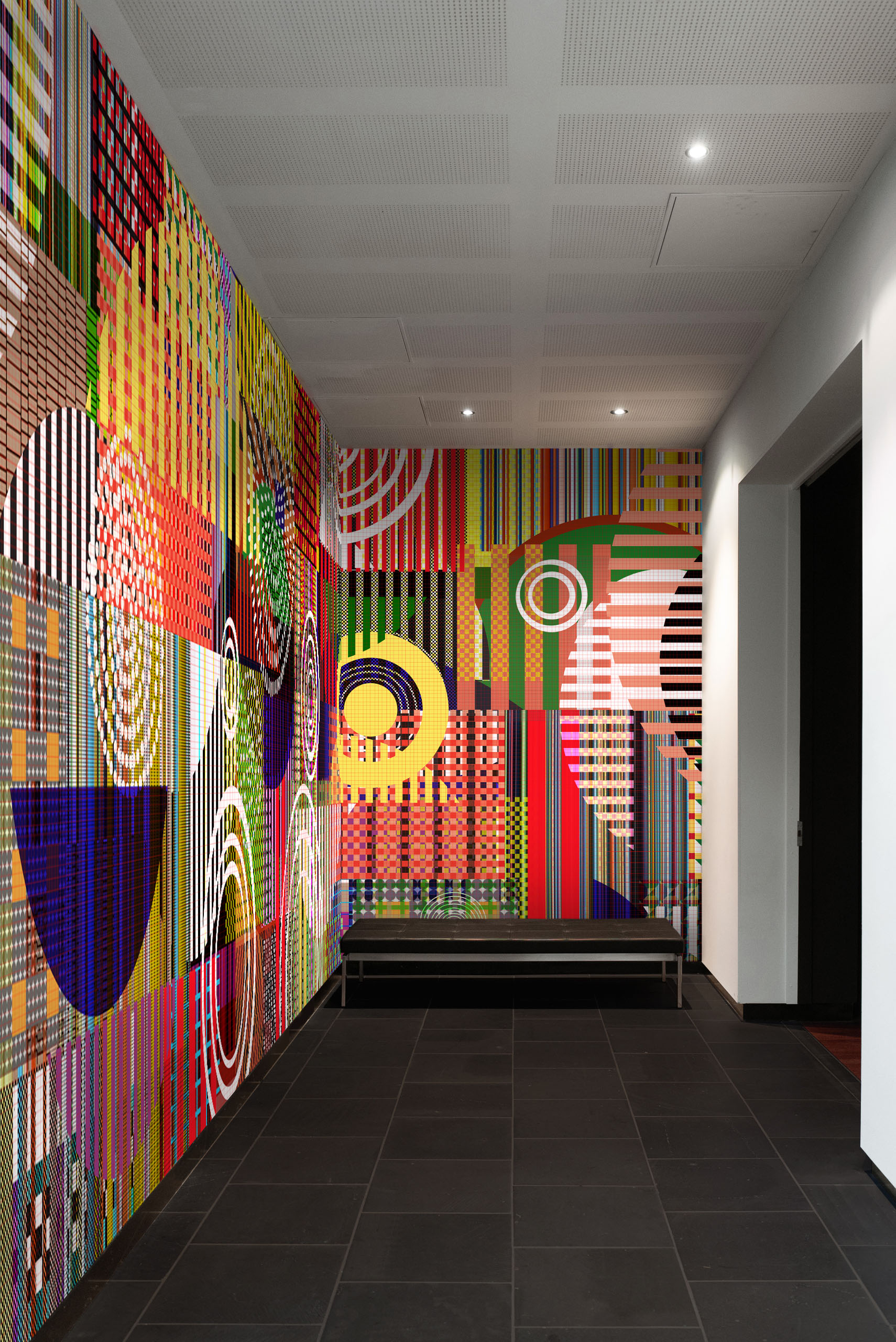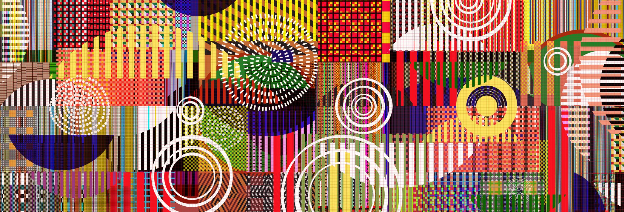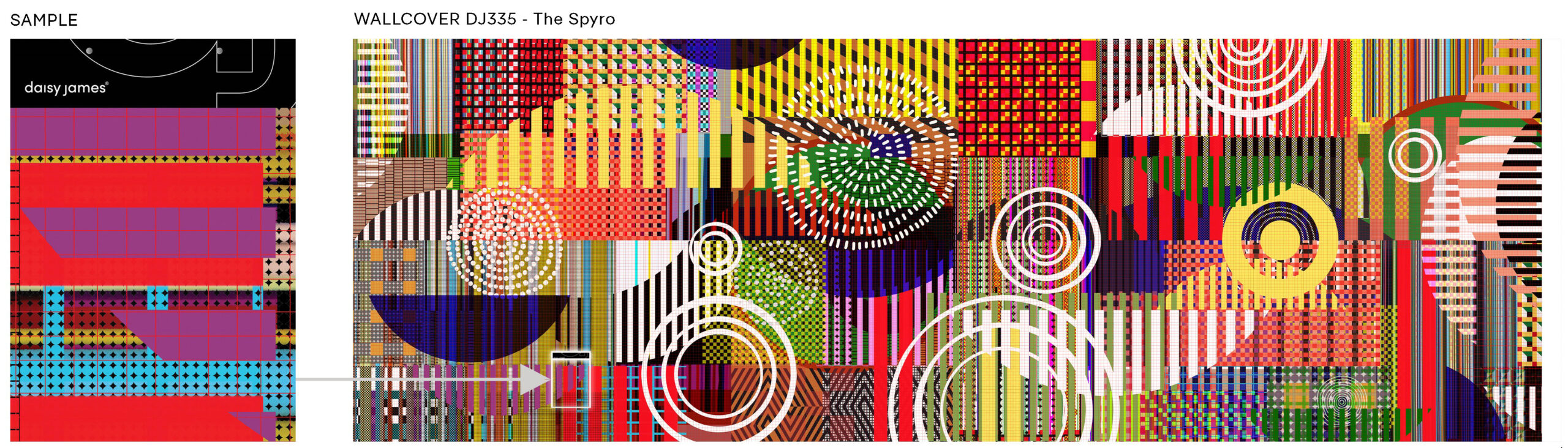 Experience a vibrant dance of colours and patterns with our dazzling wallpaper design. Delicate and bold circles create movement and rhythm, while weaving lines add flow and harmony. This design showcases the transformative power of design, turning simple elements into beauty and joy. Transform your space with this captivating masterpiece.