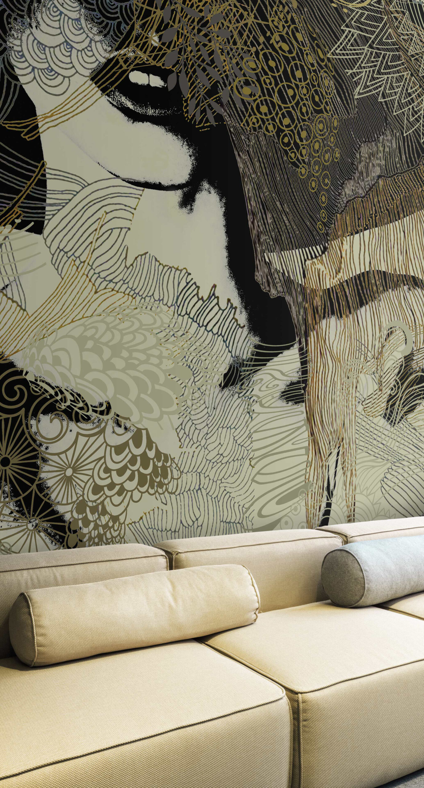 Experience an everlasting allure in this art piece, as the richness of shapes and vibrancy of colours remain timeless. The harmonious blend of warm pastel hues and clear tribal motifs creates a captivating fusion that will continue to inspire you for years to come. Embrace the enduring beauty of this wallpaper design and let its enchanting essence infuse your life with creativity and wonder.—————————————————————————————————————————————————————————————————————————————————————————————————————————————————————————————————————————————————— “Discover how “The Tribe No 1” was used in one of our interior projects. See the result here.”