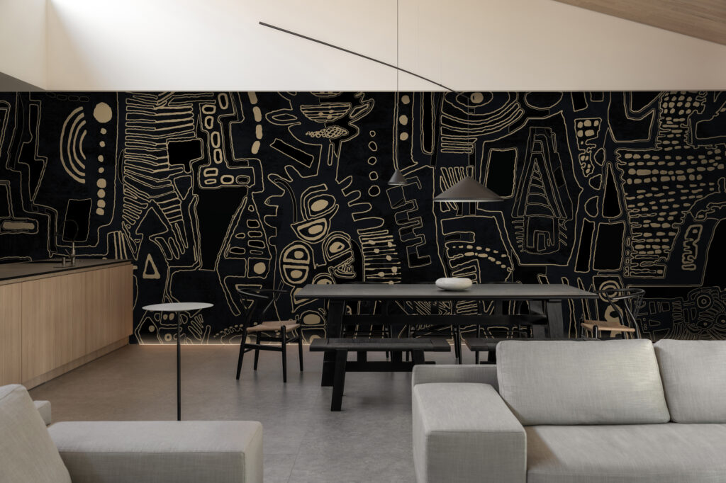 “The Umber” an exquisite fusion of black and gold, reminiscent of a majestic forest at twilight. This captivating daisy james wallpaper evokes a sense of mystery and opulence, transforming any space into a sanctuary of sophistication. With its rich, deep tones of black, intertwined with shimmering accents of gold, “The Umber” creates a dramatic yet elegant ambiance. Each brushstroke of gold glistens like sunlight filtering through the canopy of a dense woodland, adding depth and dimension to your walls.