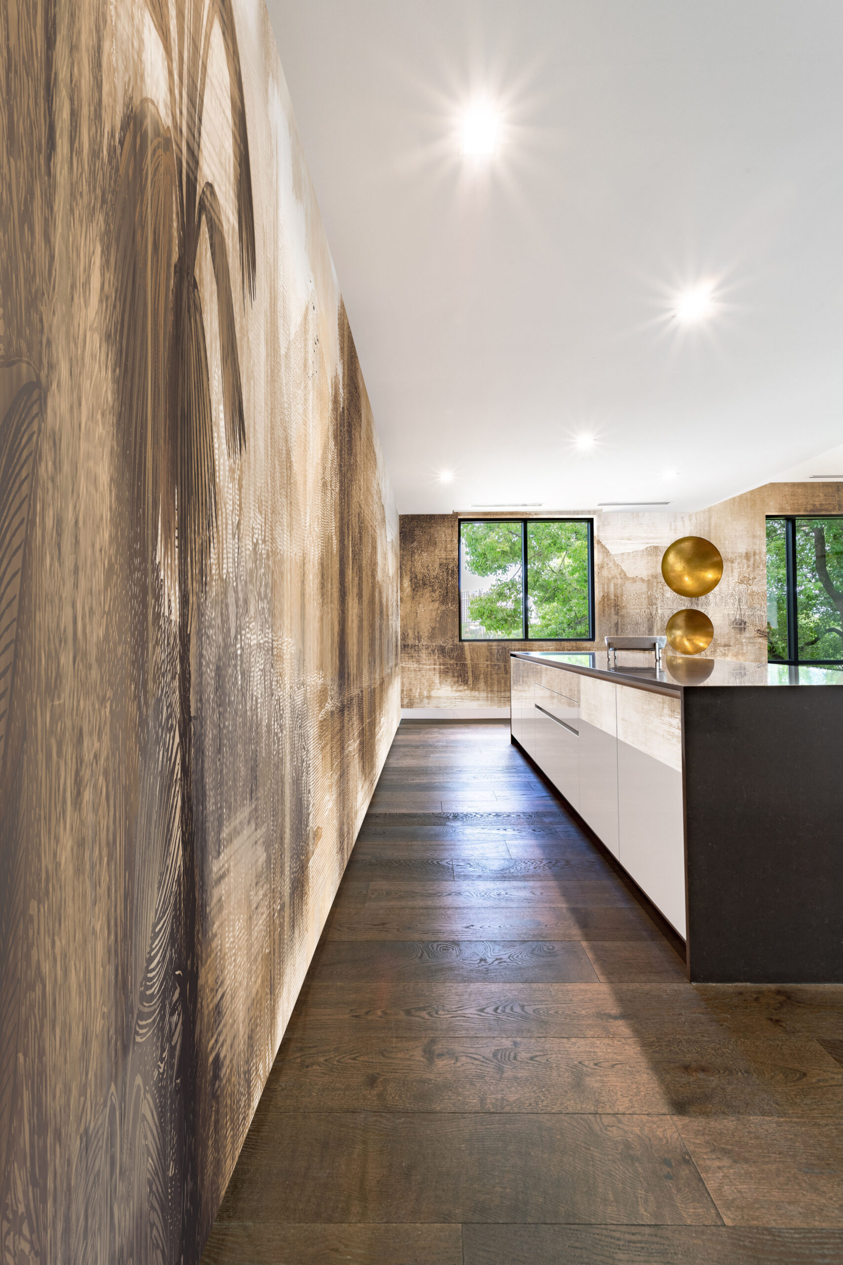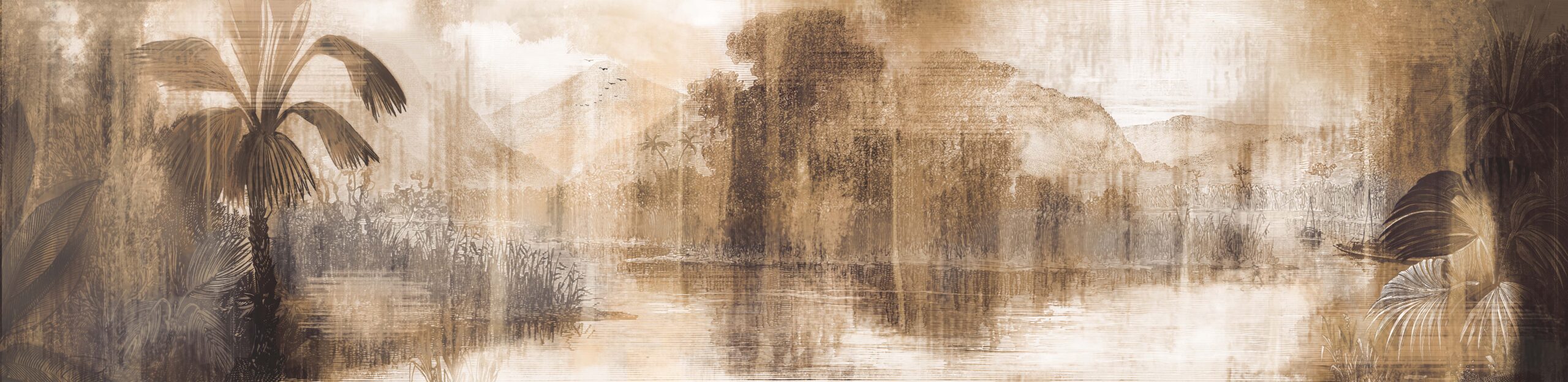 “The Valley” wallpaper is a pen-drawn spectacle, showcasing a beautiful far-sight of mountains, trees, and expertly recreated reflections on the water. With a ‘less is more’ mentality, this warm and inviting scene comes to life with just washed-out lines. A true ode to simplicity and artistry. —————————————————————————————————————————————————————————————————————————————————————————————————————————————————————————————————- “Discover how “The Valley” was used in one of our interior projects. See the result here.”