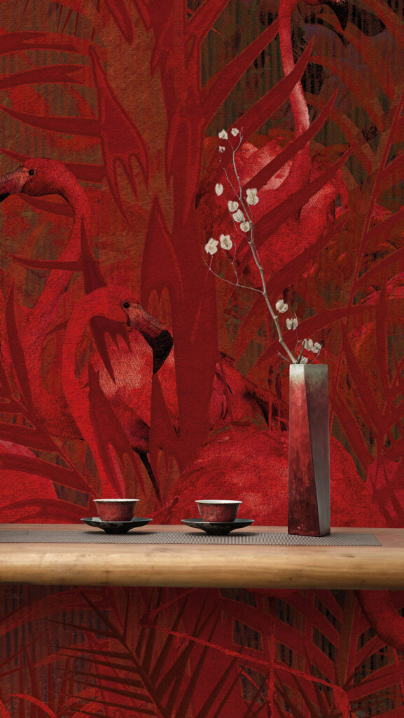 daisy james presents “The Claret”, an exclusive wall covering that exudes warmth and sophistication. This refined design features a deep bordeaux-red hue with a velvety texture, creating an atmosphere of luxury and elegance. Delicate, light-toned leaves are subtly woven into the pattern, blending seamlessly with the rich background tones. “The Claret” offers a timeless and stylish appeal, making it a perfect addition to both classic and contemporary interiors.