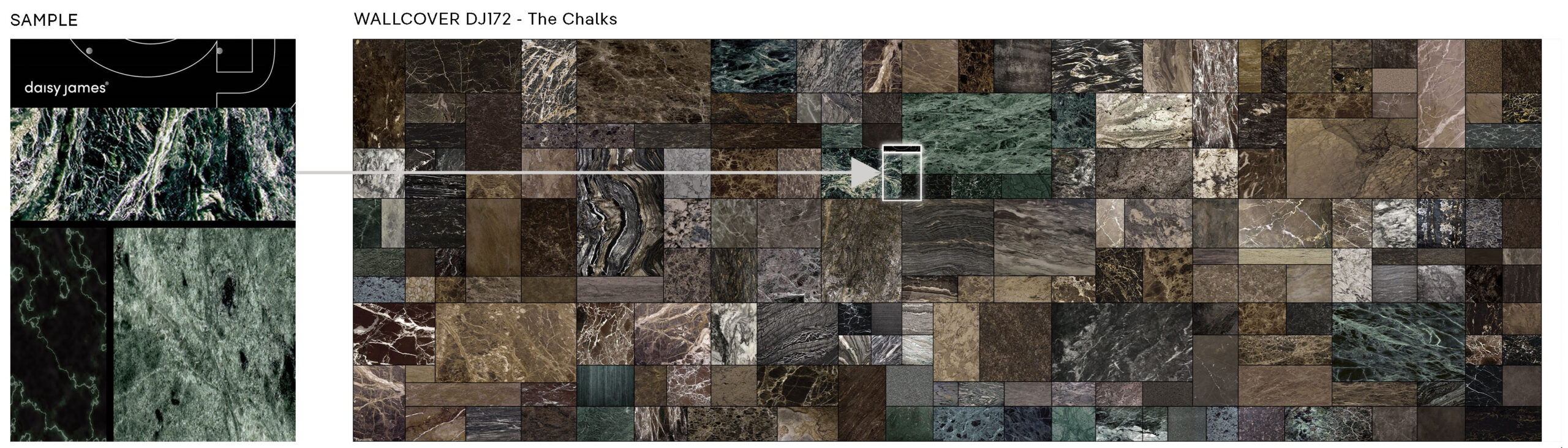 daisy james präsentiert “The Chalks” und lässt sich dabei von den komplizierten Mustern und Formen inspirieren, die man in Felsen, Marmor und Mineralien findet. Das kunstvolle Arrangement erinnert an eine felsige und doch geordnete Atmosphäre. Entdecken Sie die Schönheit und den Charme der Formationen der Natur, die in diesem einzigartigen Tapetendesign eingefangen sind.