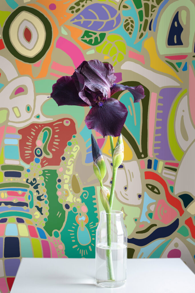 “The Fiesta Black and White” – Un motif de papier peint vivant et captivant, débordant de figures vibrantes et colorées. Ce chef-d’œuvre dynamique insuffle de la joie et de la créativité à votre espace, créant un point focal rayonnant qui suscite des conversations et des sourires. Laissez “The Fiesta Black and White” transformer vos murs…