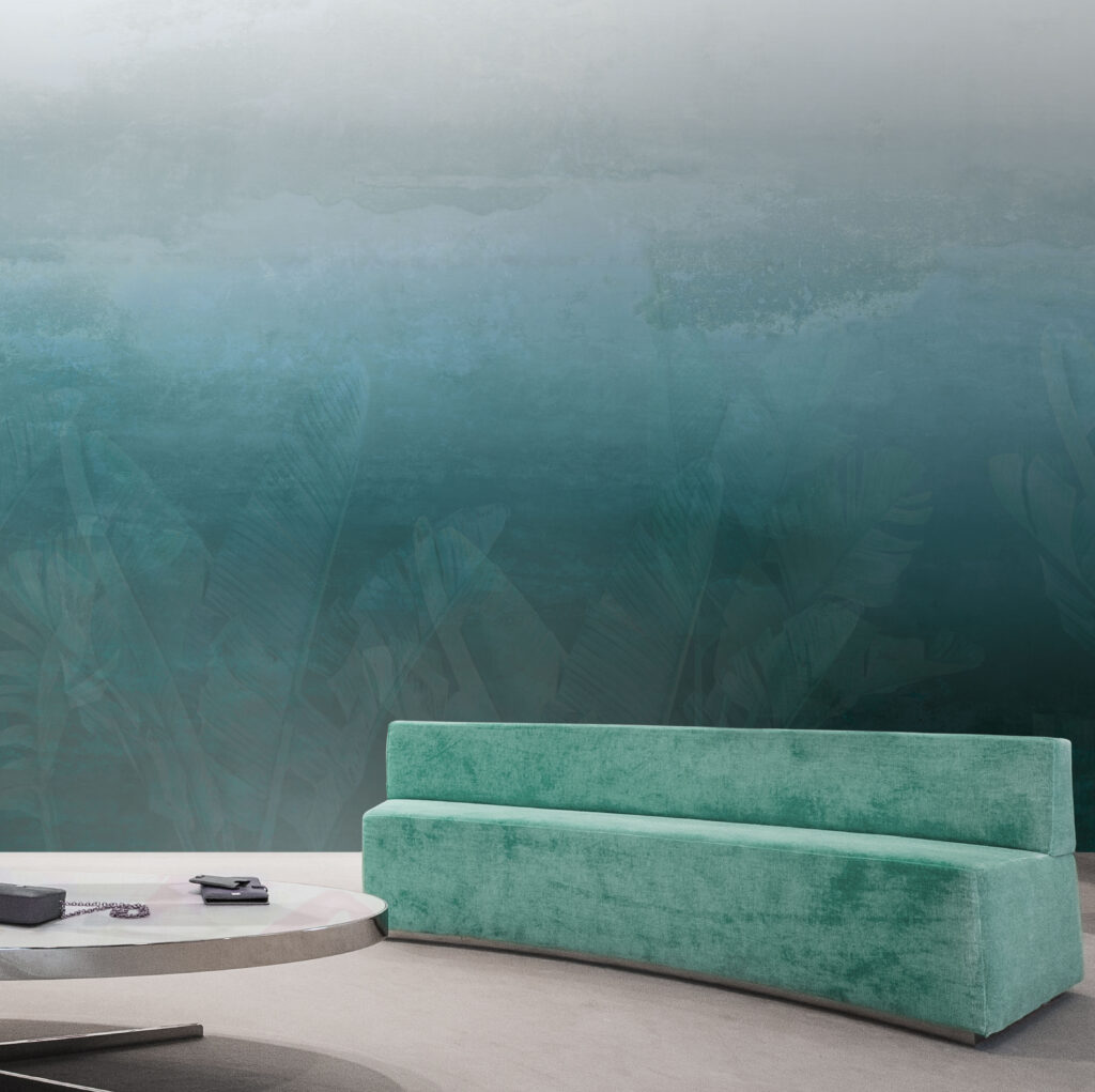 The Pure Petrol” par daisy james – Adoptez la simplicité tranquille avec un fond chaud et des feuilles apaisantes, créant ainsi un classique instantané pour des espaces sereins et sans distraction.