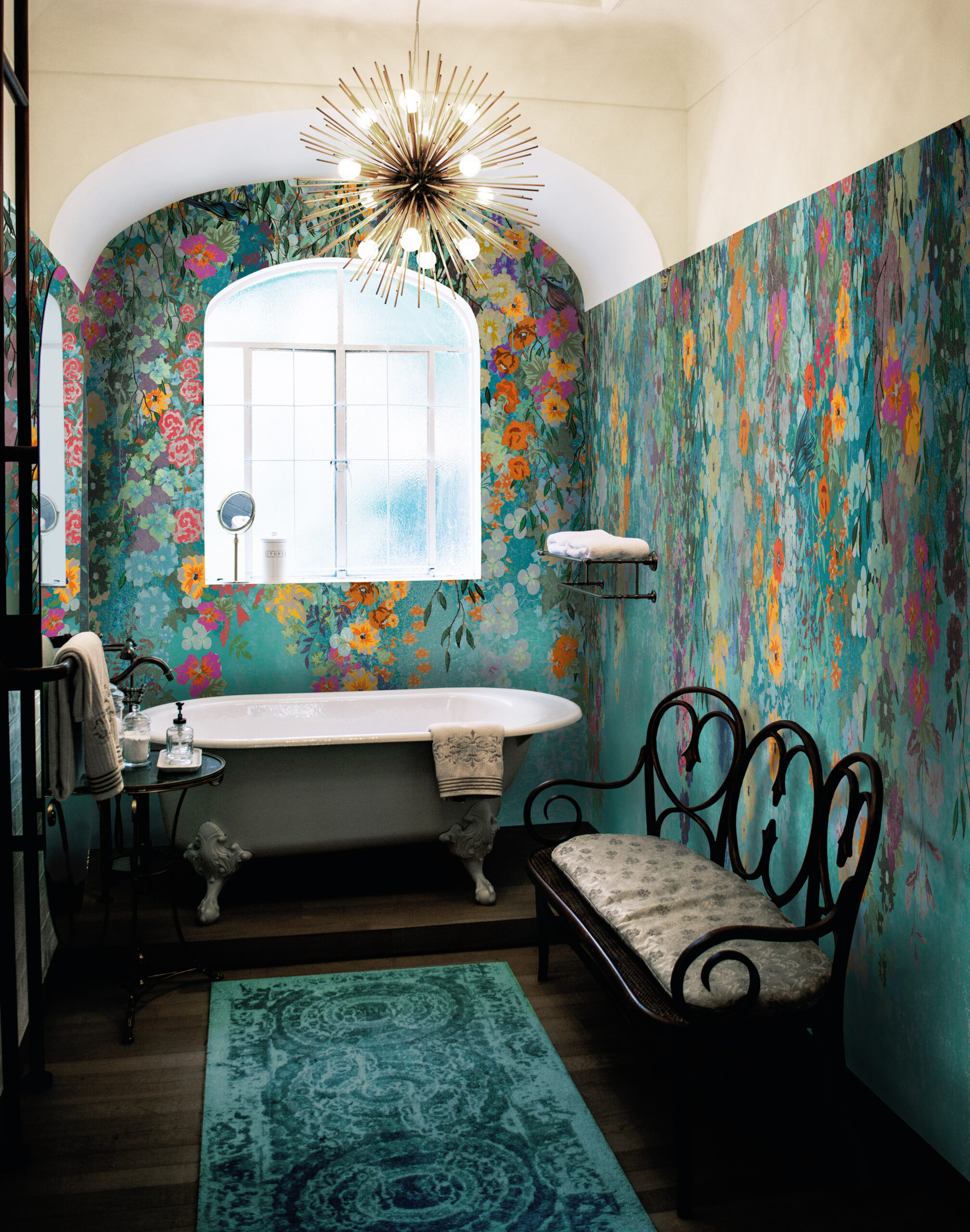 “DES SALLES DE BAINS ROMANTIQUES ANIMÉES PAR DES MOTIFS COLORÉS ET DES DÉTAILS ÉLÉGANTS.