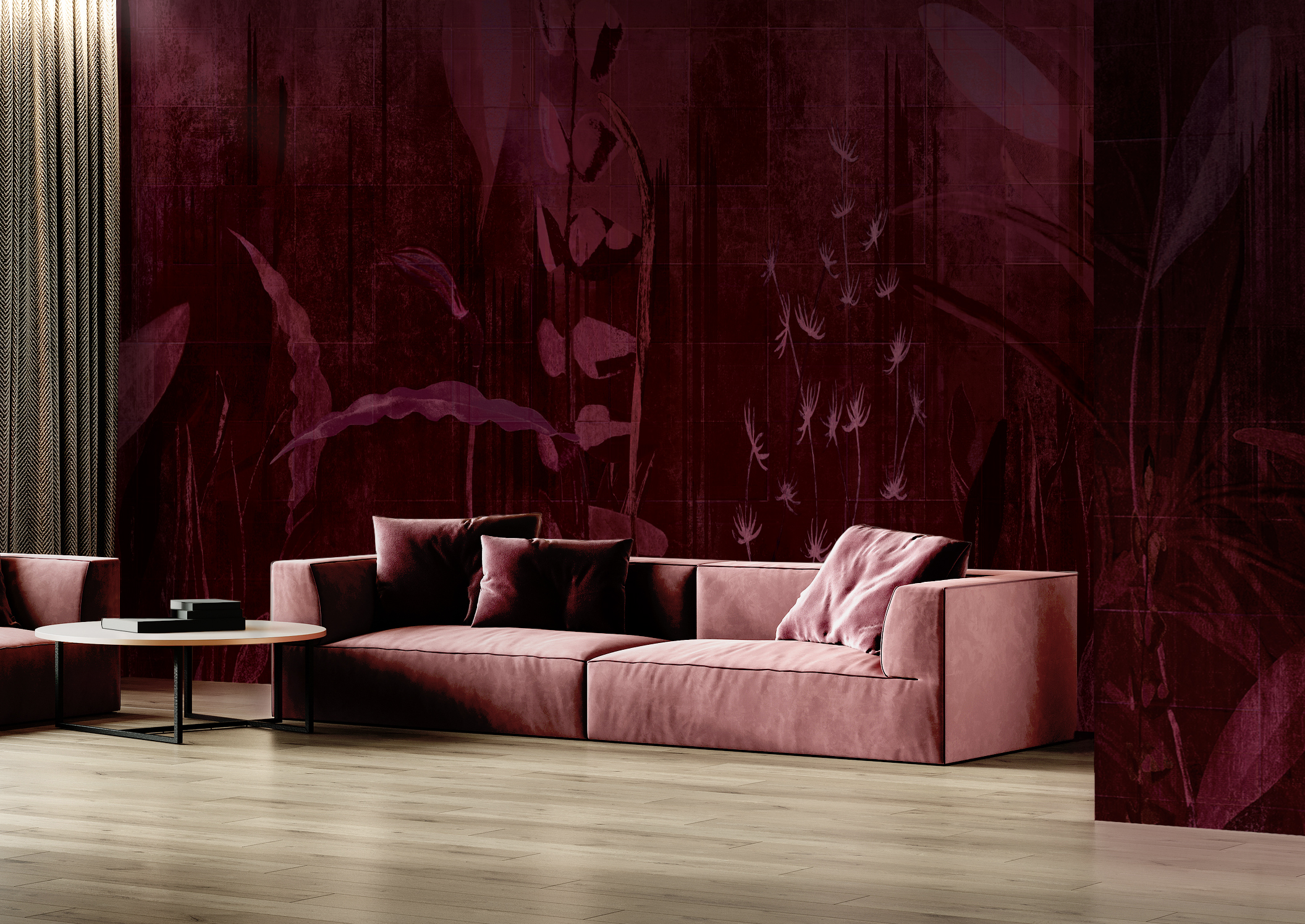 “DES TONS RICHES DE ROUGE, D’AUBERGINE ET D’ORANGE : DES REVÊTEMENTS MURAUX QUI AJOUTENT DE LA CHALEUR, DE LA PROFONDEUR ET DU CARACTÈRE À CHAQUE INTÉRIEUR”.