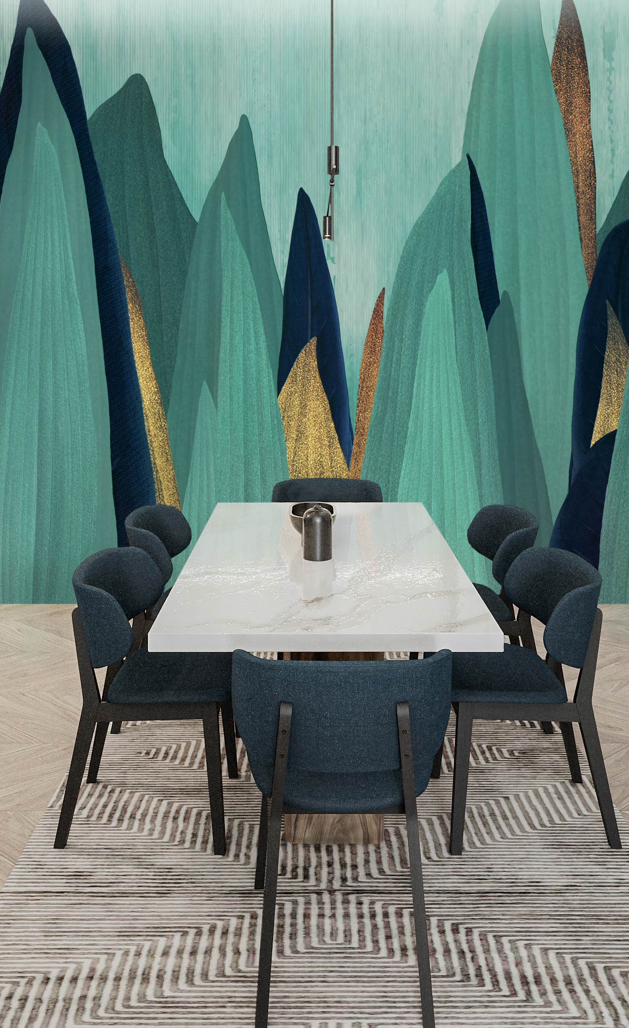“REVÊTEMENTS MURAUX VERT FONCÉ ET BLEU PROFOND : CRÉER DES ATMOSPHÈRES D’ÉLÉGANCE, DE PROFONDEUR ET DE TRANQUILLITÉ INTEMPORELLE”