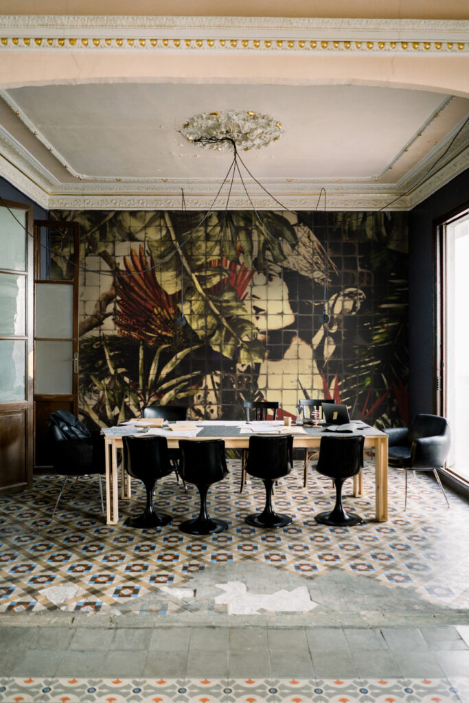 Nous vous présentons “The Icon” de daisy james, une mosaïque de grande classe qui rappelle une statue romaine de profil. Avec son allure impériale, le design contraste magnifiquement avec les rouges coûteux et les feuilles de palmier fraîches. Les couleurs faciles, la sensation d’aération et le motif intrigant des carreaux se combinent pour créer quelque chose de vraiment spécial. Ajoutez une touche de sophistication et d’intrigue à votre espace avec ce papier peint captivant.