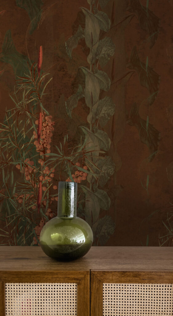 Presenting one of our favourite wallpaper featuring young ash trees in multiple colour themes. With flat, cartoony colours reminiscent of an oil painting, the gradual transitions bring the trees to life. “The Ash No.1” offers a darker option, perfect for creating a mysterious ambiance in well-lit rooms. Choose this captivating design to elevate your space.
