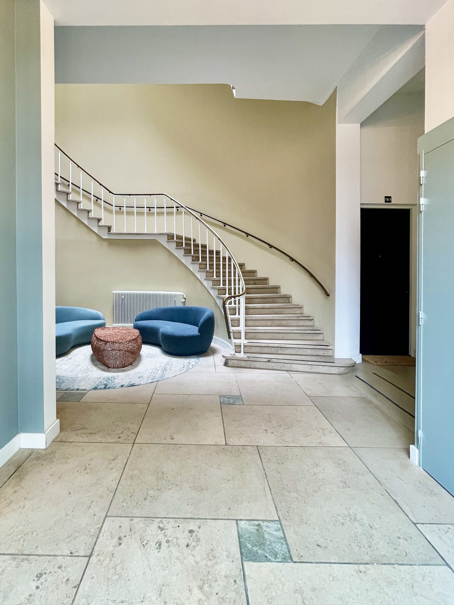 A historic home with rich classical features offers the perfect foundation for a modern interior. Studio Solleveld, based in Arnhem, beautifully demonstrates how traditional architecture can harmonise with contemporary furnishings, accessories, and wallcoverings. Soft pastel-toned furniture paired with daisy james artistic wallcovering “The Mermaid” creates a space that feels both curated and comfortably lived-in. The result is a refined, design-led interior with an artistic yet homely atmosphere a subtle balance of heritage and modernity.