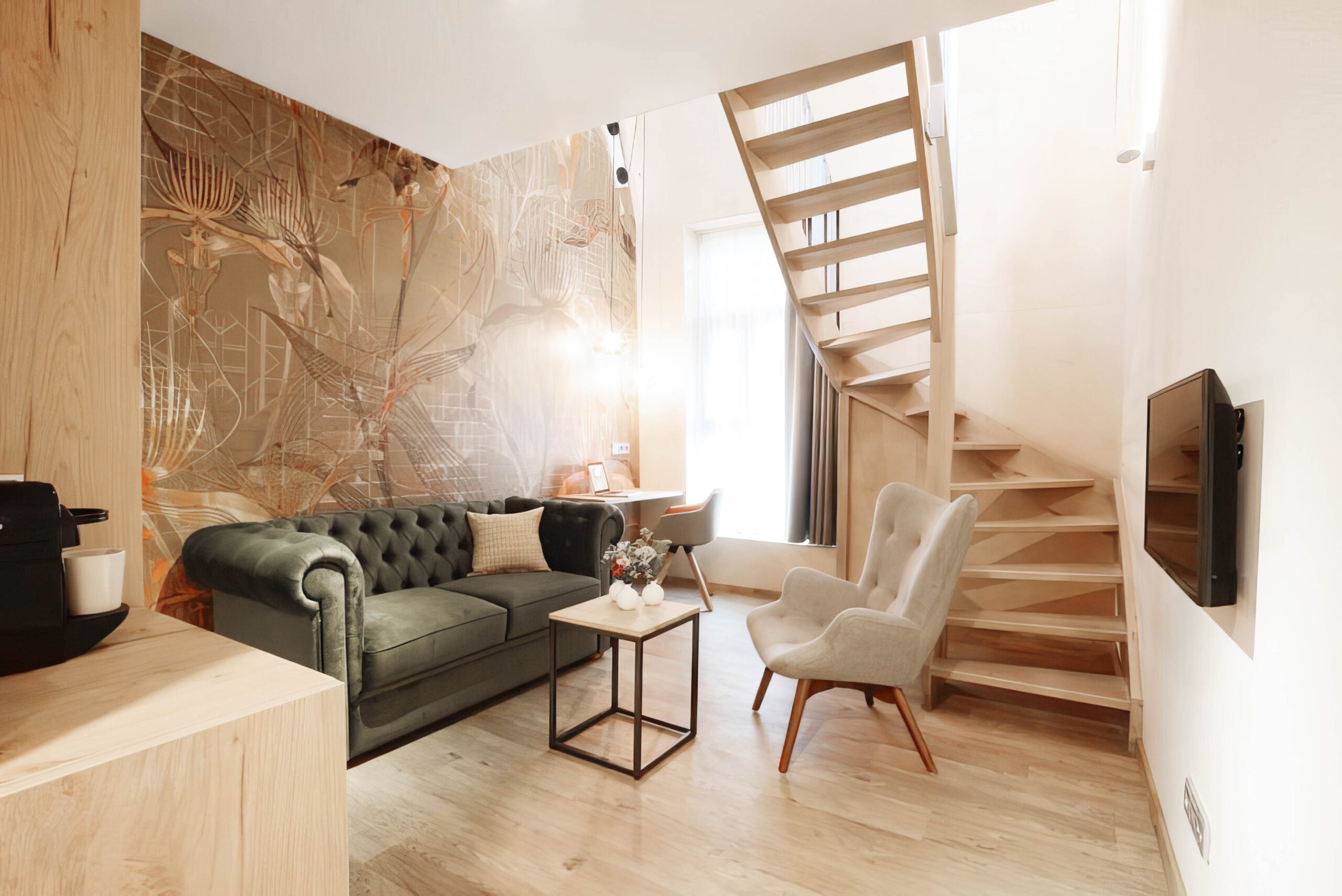 Conference location – Landgoed Huize Bergen (Vught – The Netherlands) is the place where the complete daisy james collection of wallpaper “The Orchids” (Green, Yellow, Black) has been applied. Architects Jeanne Dekkers and Elise Zoetmulder have incorporated the colours from the wallpaper into the accessories, such as lamps and cushions. This thoughtful combination, along with the wooden finishes, creates a serene, stylish, and timeless atmosphere.