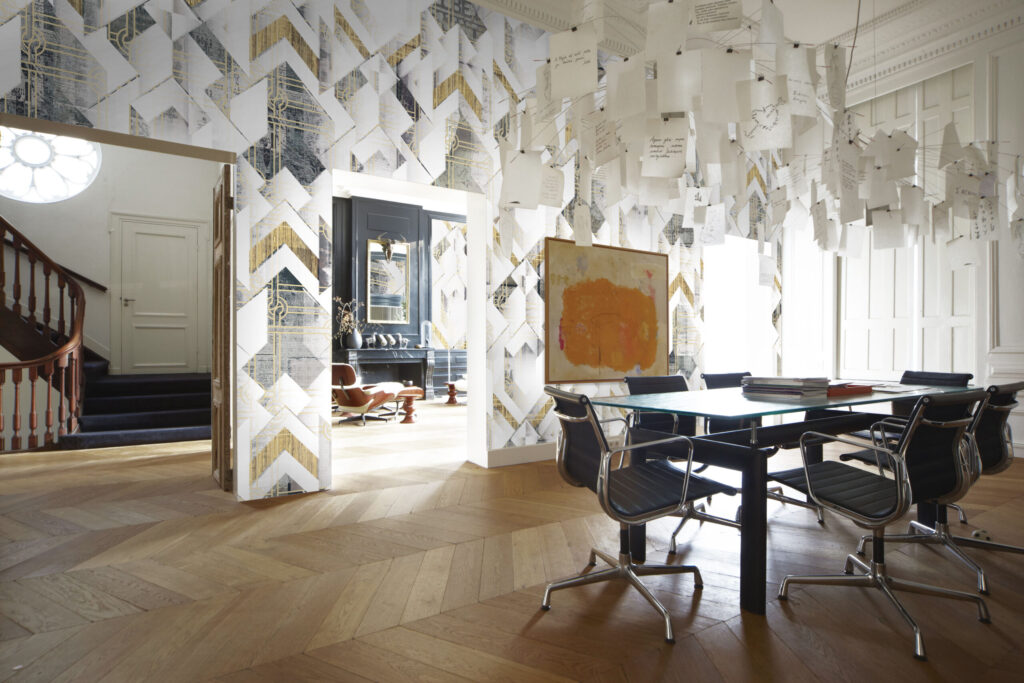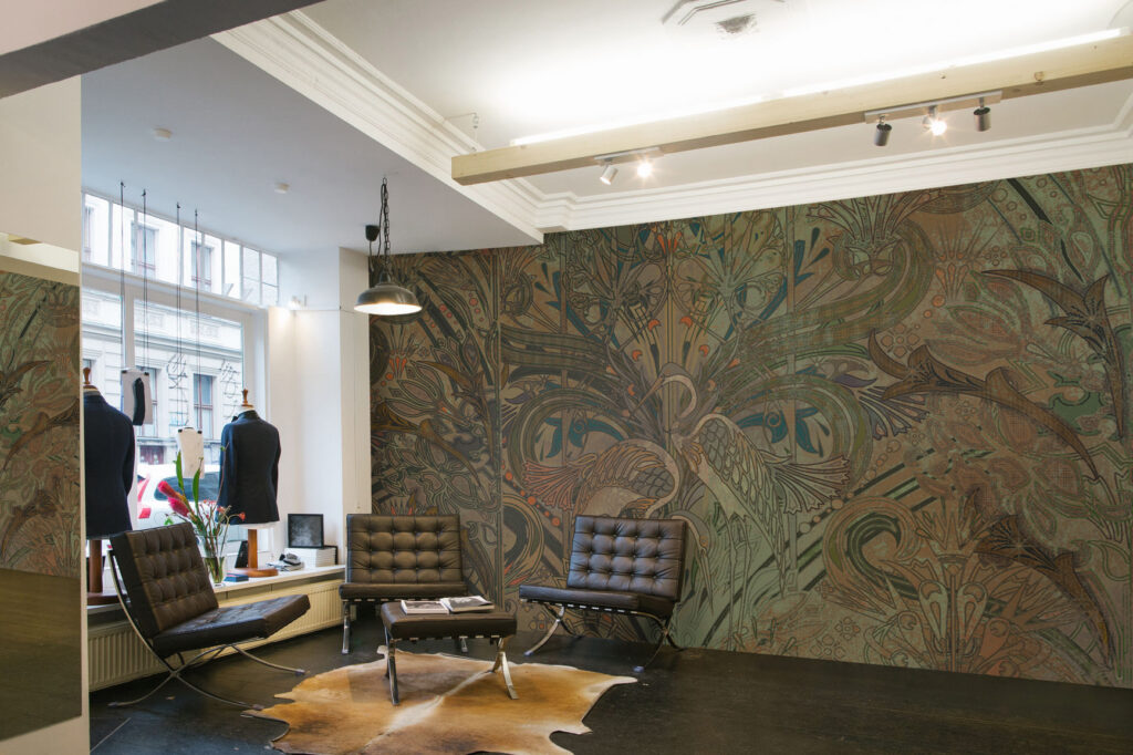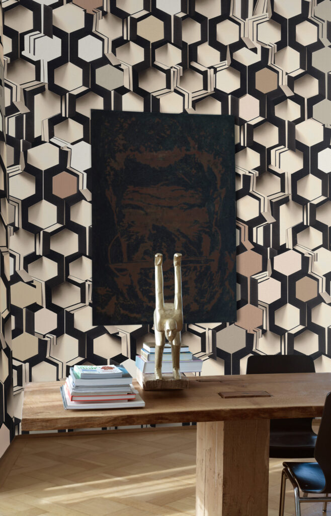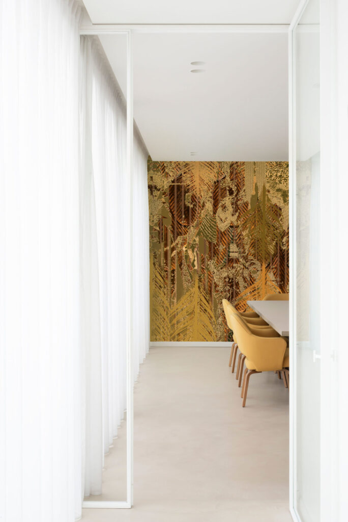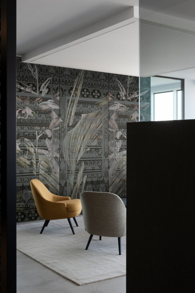 A workspace should inspire curiosity and focus. At daisy james, we design wallcoverings with intriguing patterns that invite a second look. From a distance, they appear as elegant, harmonious designs but up close, subtle details emerge: shapes, textures and hidden elements that reveal a new story every time. These multi-layered patterns are perfect for workspaces where creativity and concentration go hand in hand. They stimulate the imagination without overwhelming the space, creating an environment that feels both professional and inspiring. With seamless execution and refined detail, our wallcoverings turn every wall into a canvas that is stylish from afar and fascinating up close.